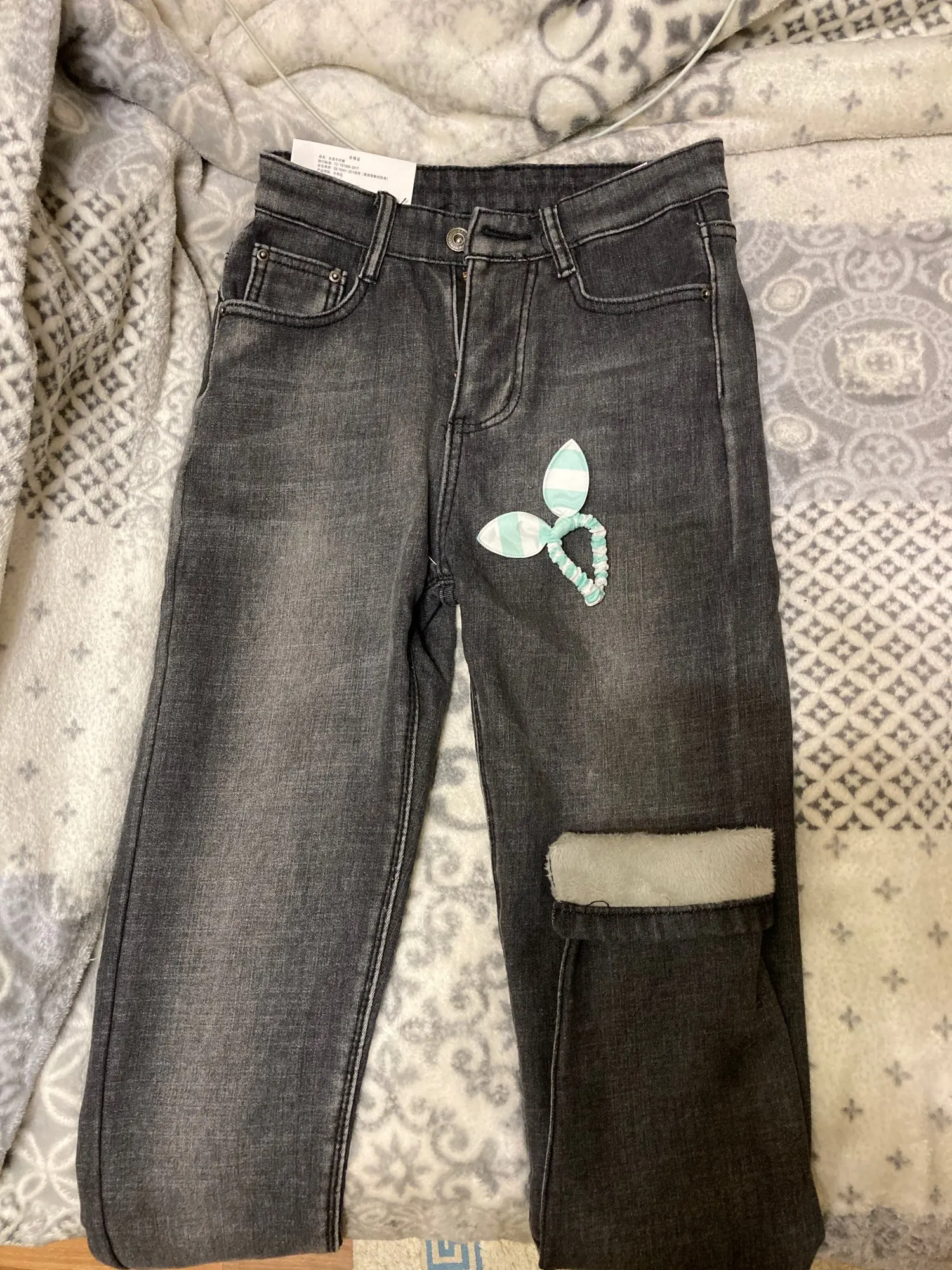 Джинсы коротковаты, у ребёнка рост 153 см, худенькая, но дочь всё равно довольна, резиночку для волос положили, спасибо продавцу большое!!!