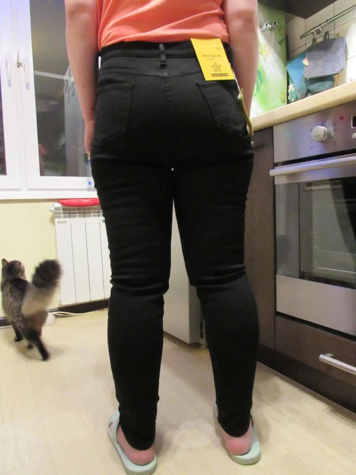 Получила примерно через месяц, на нашей таможне неделю пролежал, хорошо хоть тепло в Сибири нынче. По качеству вроде ничего, но много ниток. Думаю правильно написала девушка ранее, что джинсы маломерят на размер. Ношу 28 на об 88, от. 75, рост 155, его и взяла. На талии хорошо, комфортно, не жмёт, зато поджимает в коленях и в икрах, хотя у меня тонкие ноги. Думаю 29 сидел бы лучше, эти сидят в облипку, как колготки, скинни-скинни. Цвет довольно светлый, длина полная на мой рост, для девушек выше, будут короткие. Джинсы подойдут девушкам с животиком и тонкими ногами как я