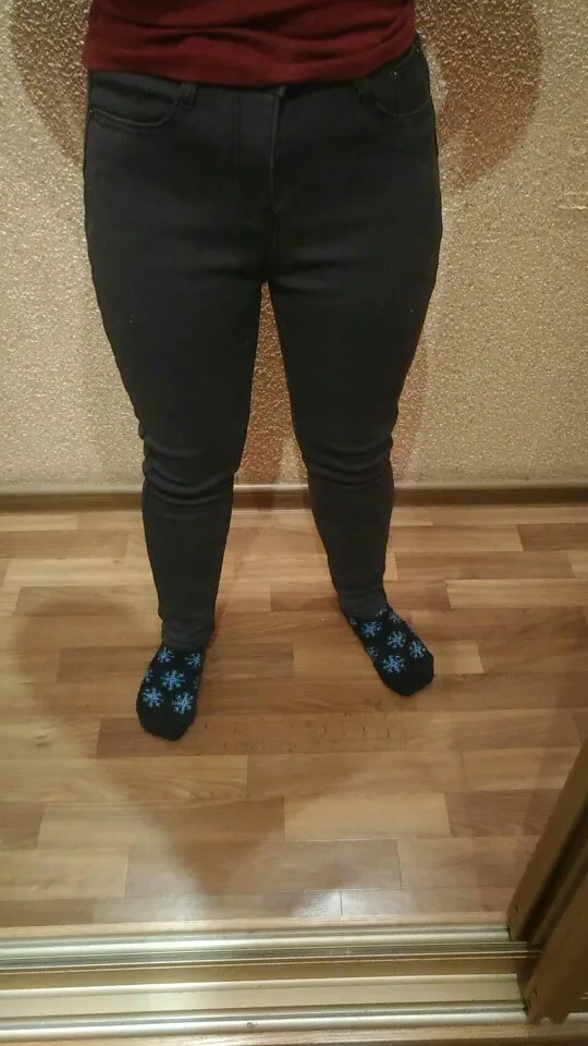 Доставка 1 месяц в Москву. Трек отслеживался. Джинсы сели отлично на ОТ 70, ОБ 96, рост 165 см. Если бы я взяла 27 размер, то икры очень сильно были бы передавлены, а так терпимо. Длина отличная, ниже щиколотки, не придется светить носками. С колготками в Крещенские морозы в -15 в Серпухове было в них холодно. Из минусов: молния была сломана, часть денег на замену я вернула через спор. Эти джинсы я ношу с удовольствием, поэтому однозначно их рекомендую!