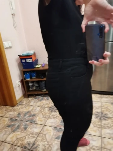 Штаны понравились больше чем такие же в синем цвете, они мягче, лучше растягиваются по фигуре. У меня проблемные икры, постоянно отекают от сидячей работы. Проблем с одеванием не возникло, размер подошел. Мои параметры об 110, от 89, рост 167, по длине хорошо, ниже косточки. Покупкой довольна, продавцу большое спасибо.