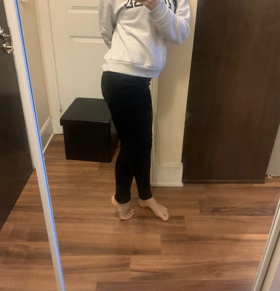Джинсы отличные. 34 размер тянется, по сравнению с 32 размером серых. на втором, третьем и четвертом фото эти двое джинс в сравнении. Они одинаковой длины, но при этом посадка у черных джинс ниже. Если у вас стоит выбор между черными и серыми, то берите чёрные, они точно тянуться.