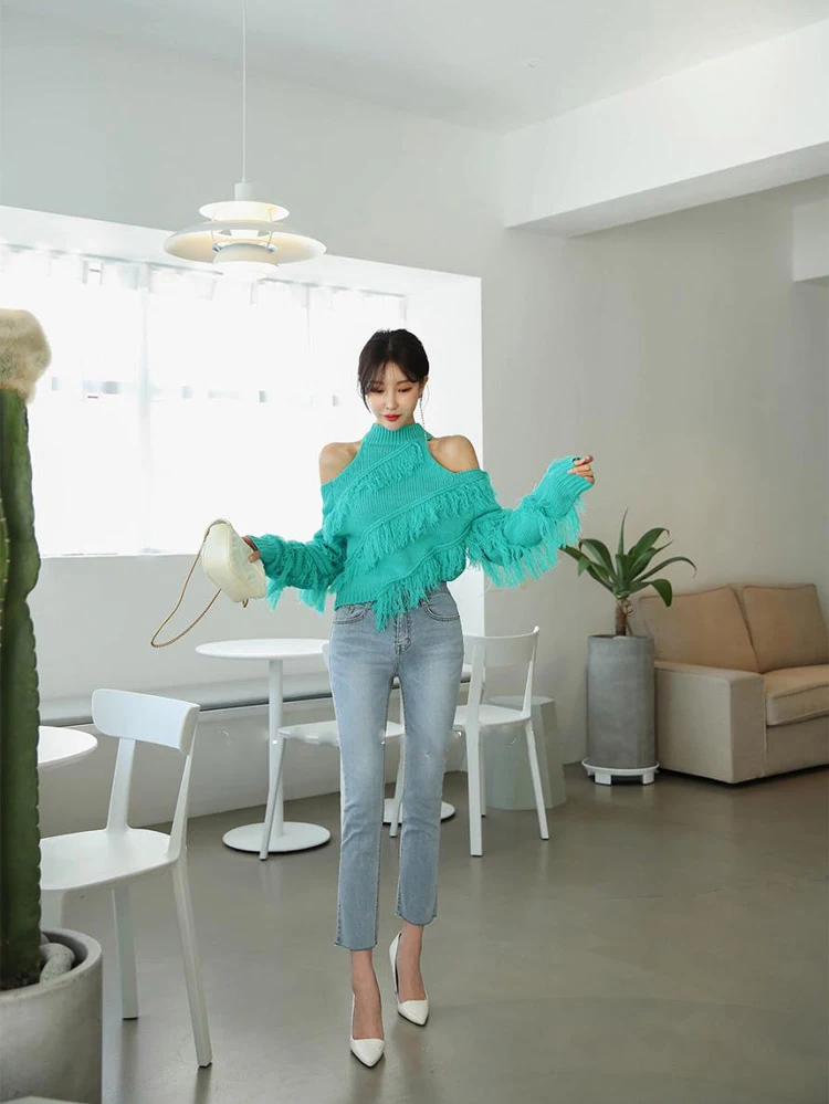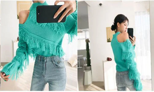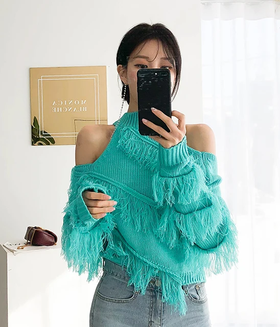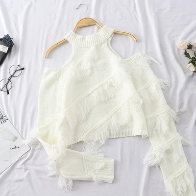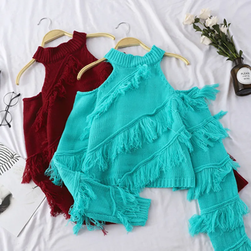 Insновые зимние женские пуловеры с бахромой, свитер, сексуальная Водолазка с длинным рукавом, корейский Повседневный Свободный вязаный свитер C99203K