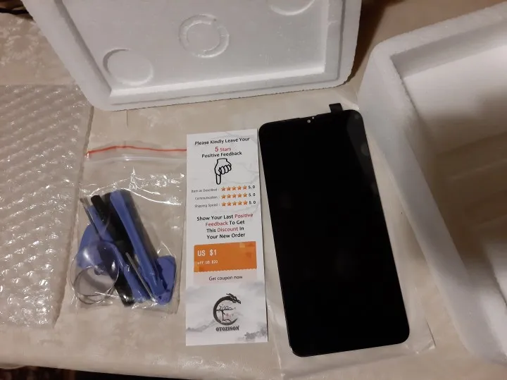 Дисплей пришел очень быстро - около 2 недель до Тольятти. Упакован отлично - нет шансов разбить. После установки задняя крышка НЕ защелкивается из-за того, что рамка дисплея чуть МЕНЬШЕ оригинала. Теперь хоть клей накидывай вовнутрь, чтоб телефон не распадался