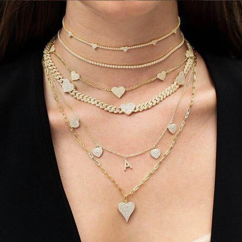 2019 модные ювелирные изделия пастельного цвета с фианитами, в форме сердца, 5 шт., милая очаровательная теннисная цепочка в виде сердечек, ожерелье-чокер в подарок на день Святого Валентина