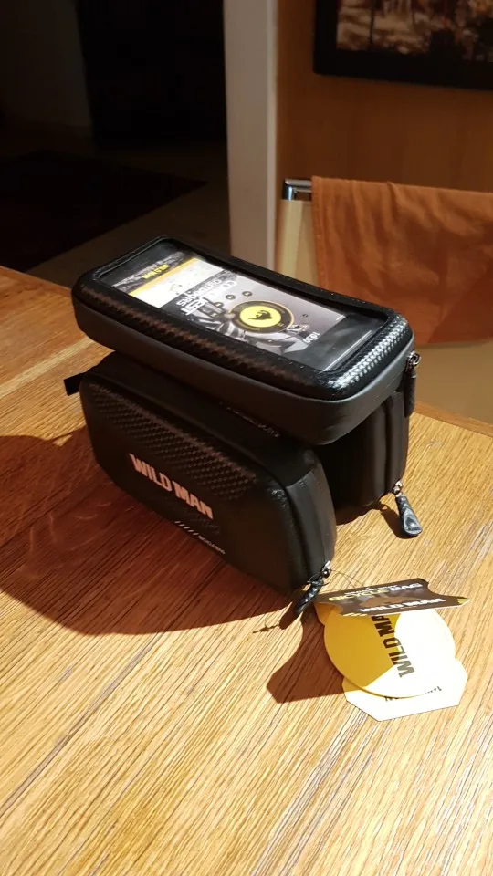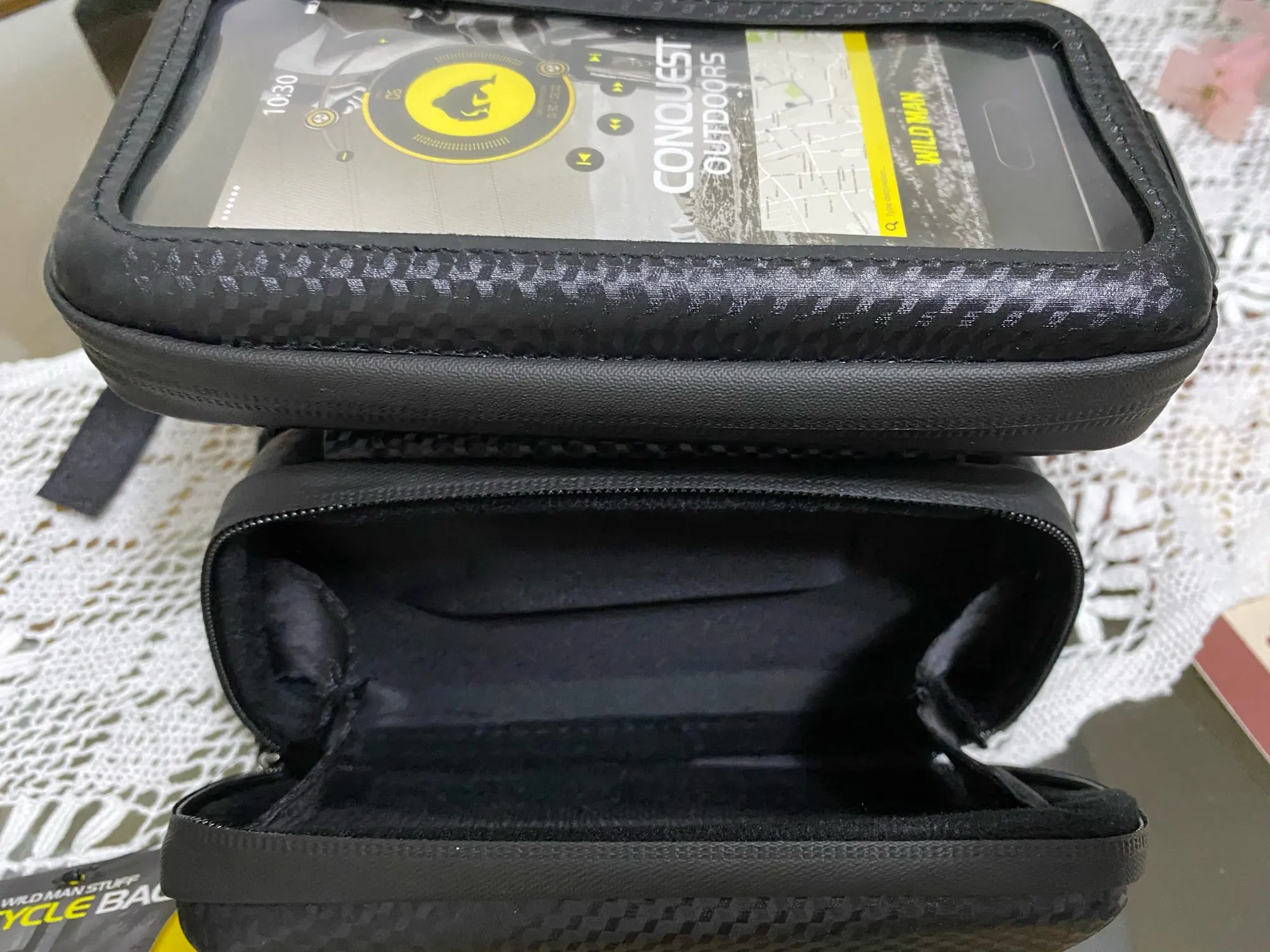 Отличная сумочка! В боковые карманы вошли все велосипедные ключи, запасная камера, масленка, фонарь, комплект запасных батареек, рем набор для заклейки камер и еще осталось немного места. В верхний отдел под телефон (а там еще есть кармашек для наличности-карточек) вошел Xiaomi Redmi 9S в толстом чехле и даже не вплотную! Сумка действительно водонепроницаемая - даже замки сделаны очень качественно (после закрытия молнии она дополнительно закрывается резиновыми уплотнителями. Единственный минус - это пленка закрывающая экран, было бы круто если бы она не шла волнами.