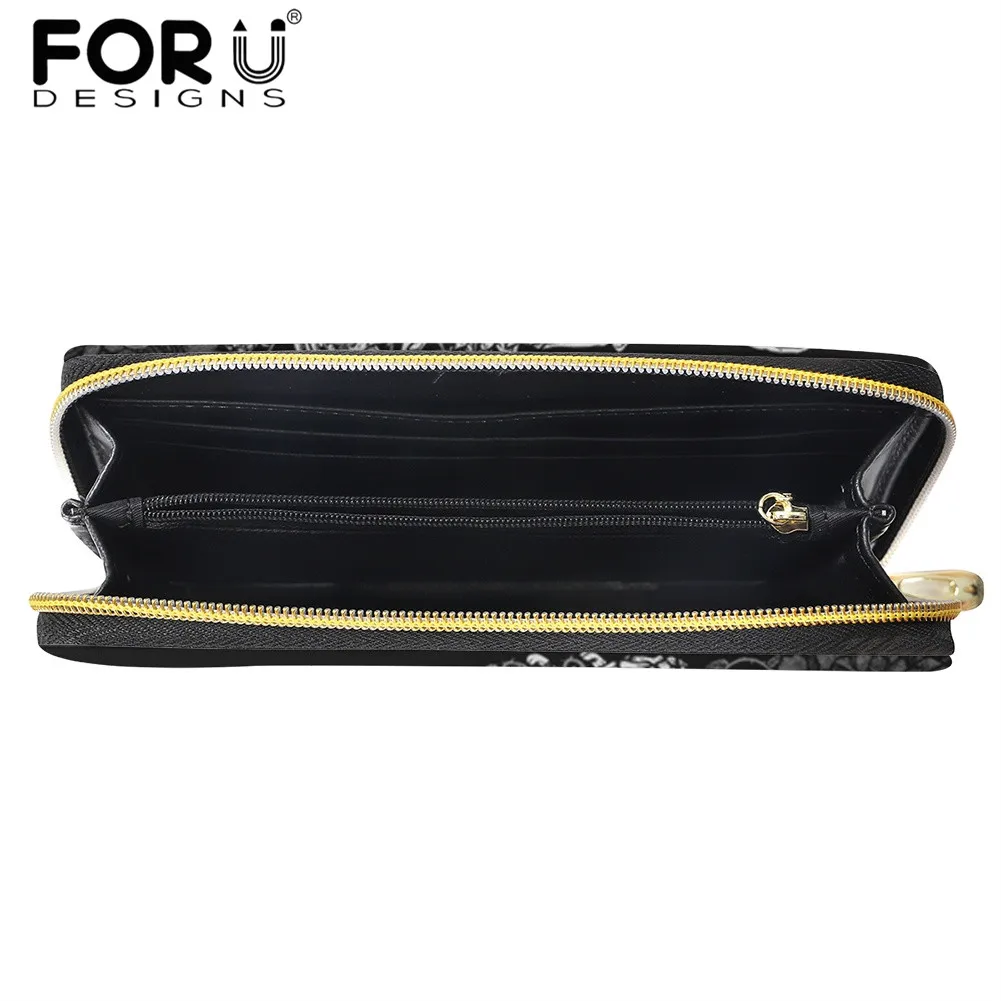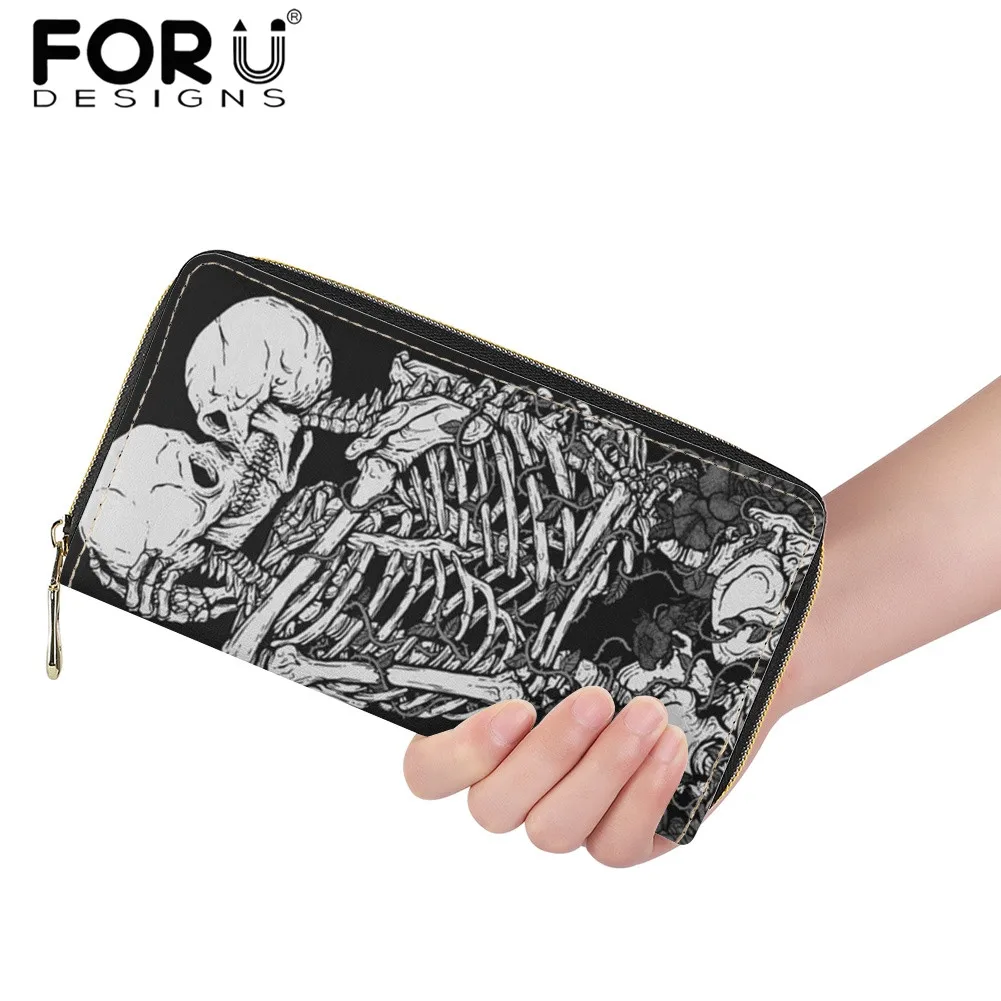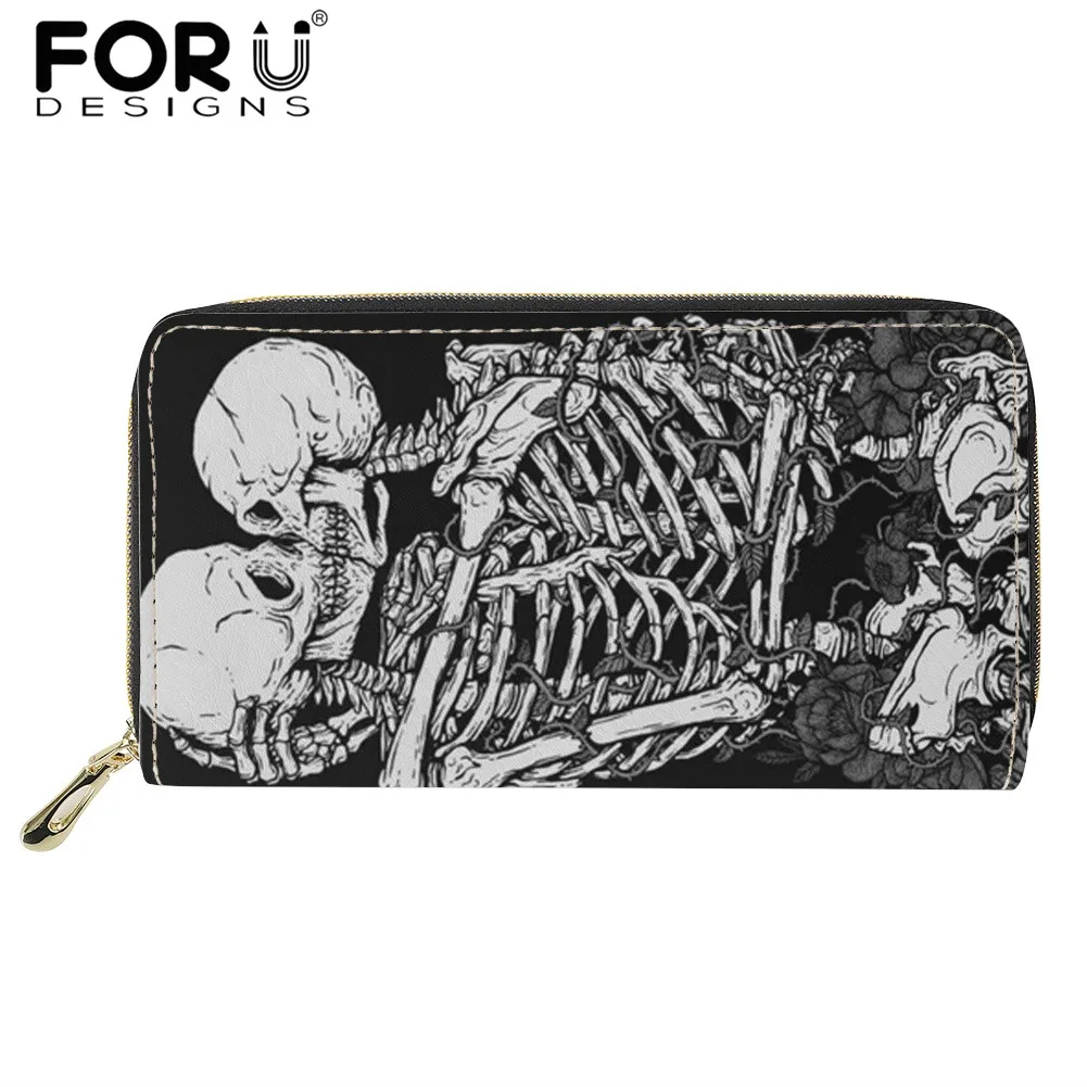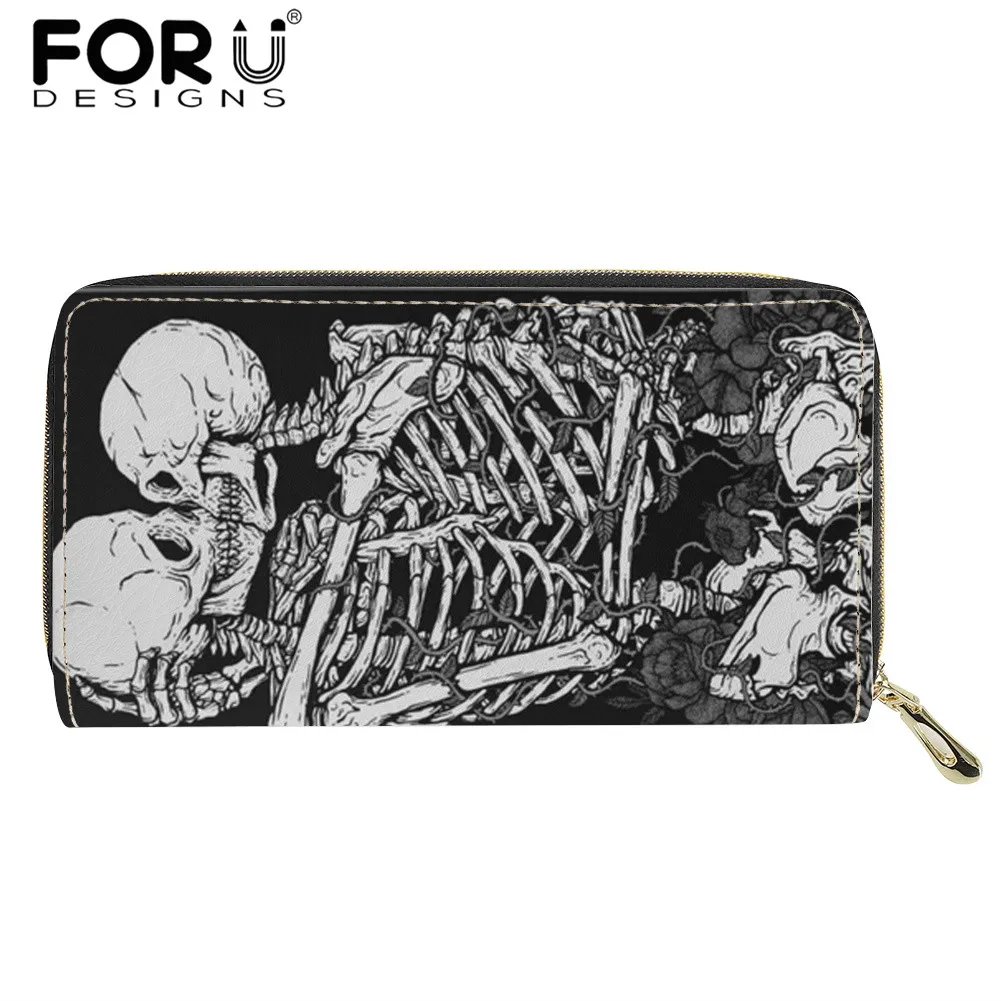 Черные кошельки FORUDESIGNS, дизайнерский Длинный кошелек из искусственной кожи в стиле панк для женщин, кошелек с принтом черепа для банковских карт, брендовый кошелек, кошелек