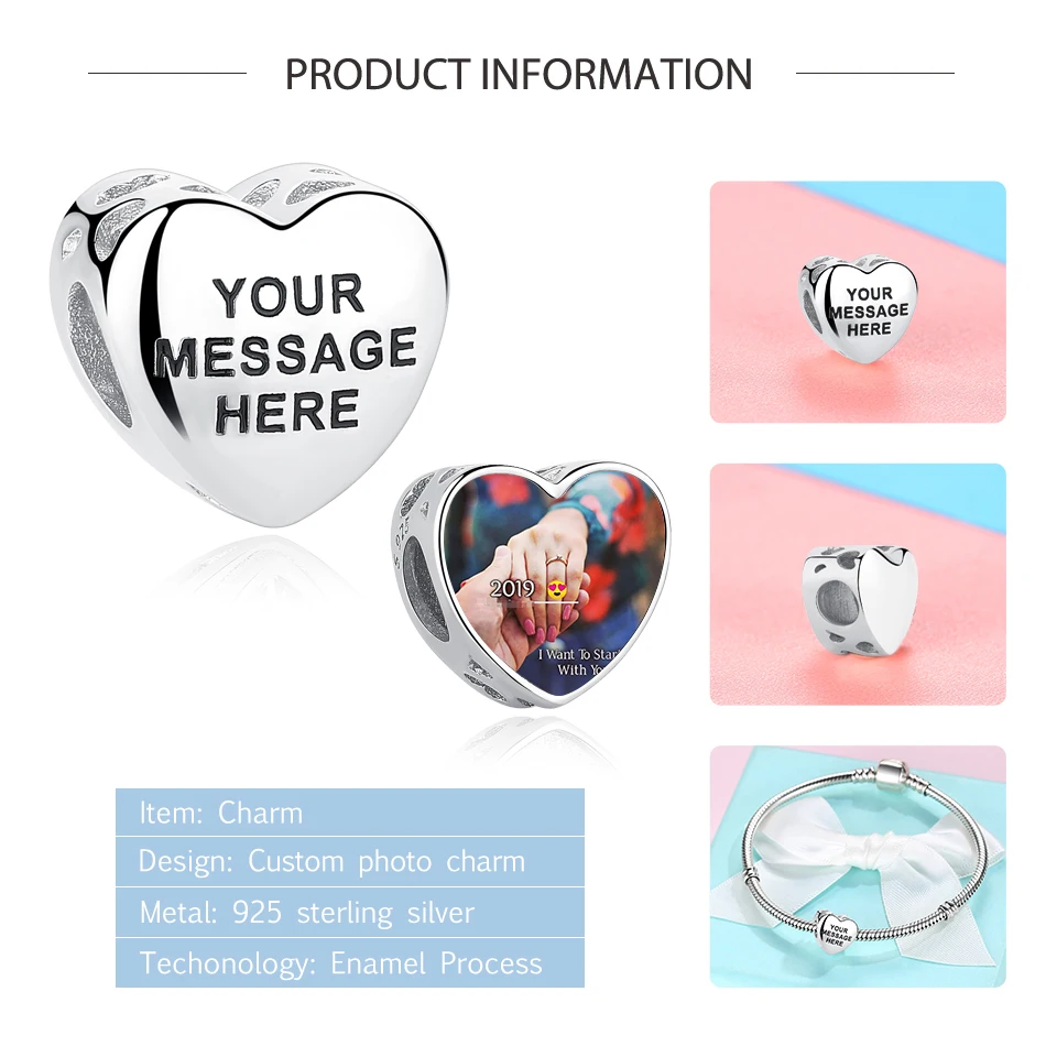 Персонализированные пользовательские фото Шарм 925 стерлингового се...