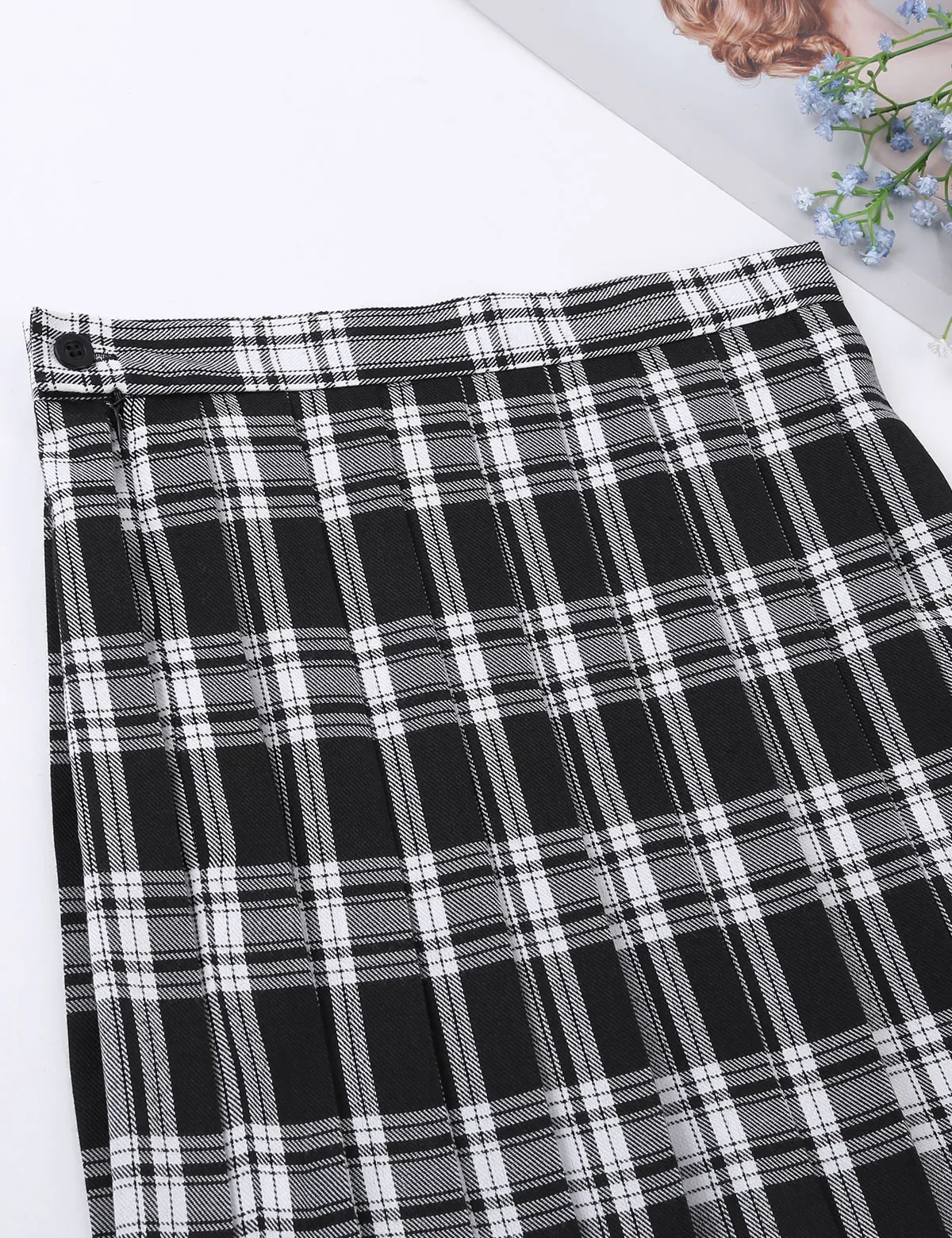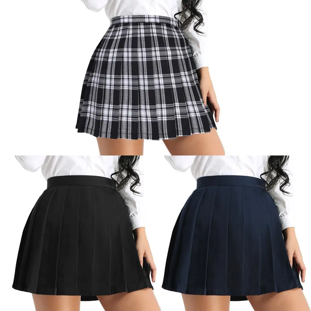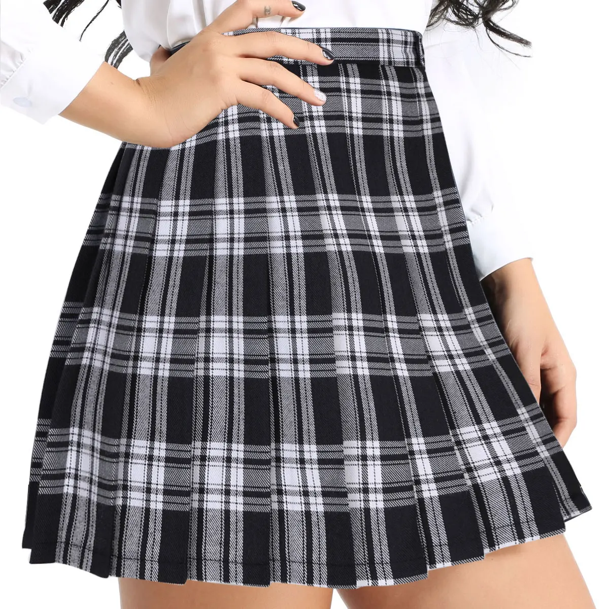 Короткая юбка в стиле Харадзюку, новая Корейская клетчатая Женская юбка на молнии с высокой талией, школьная плиссированная юбка, сексуальная клетчатая мини-юбка, размера плюс