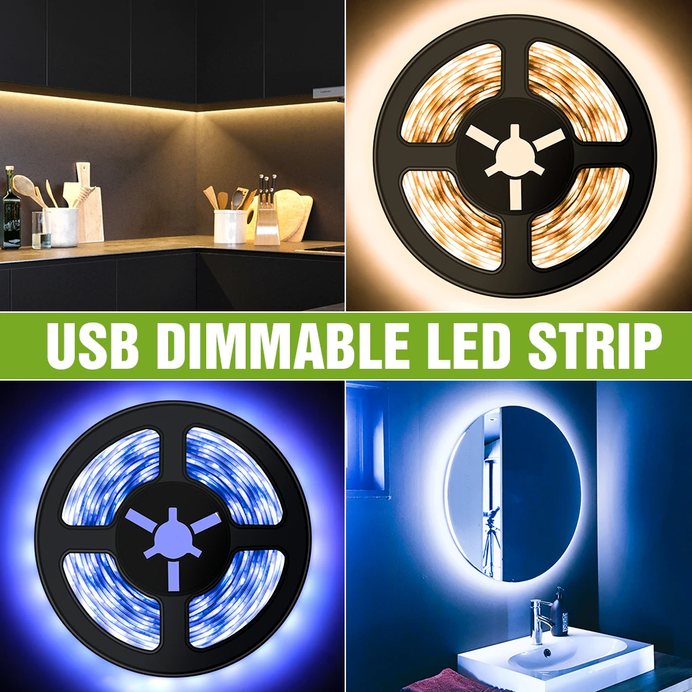 Водонепроницаесветодиодный Светодиодная лента SMD2835 для дома и спальни, осветительный прибор с диммером и сенсорным выключателем, USB, 5 В, IP65, 1 м, 2 м, 3 м, 4 м, 5 м
