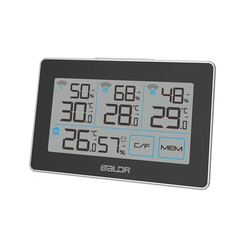 Метеостанция с дистанционным управлением, 3 беспроводных датчика температуры и влажности, с сенсорным экраном