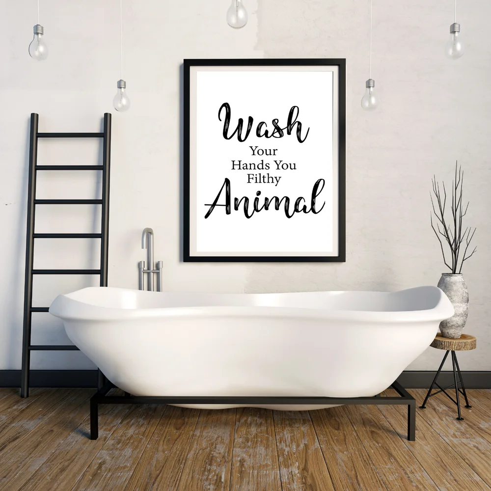 Настенная Картина на холсте, забавный знак правила в ванной, сканди...
