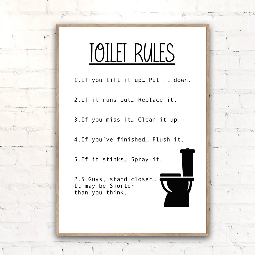 Настенная картина Правила пользования туалетом на холсте, современный смешной знак правила в ванной, плакат, принты туалета, смешные картины, декор для ванной комнаты и дома