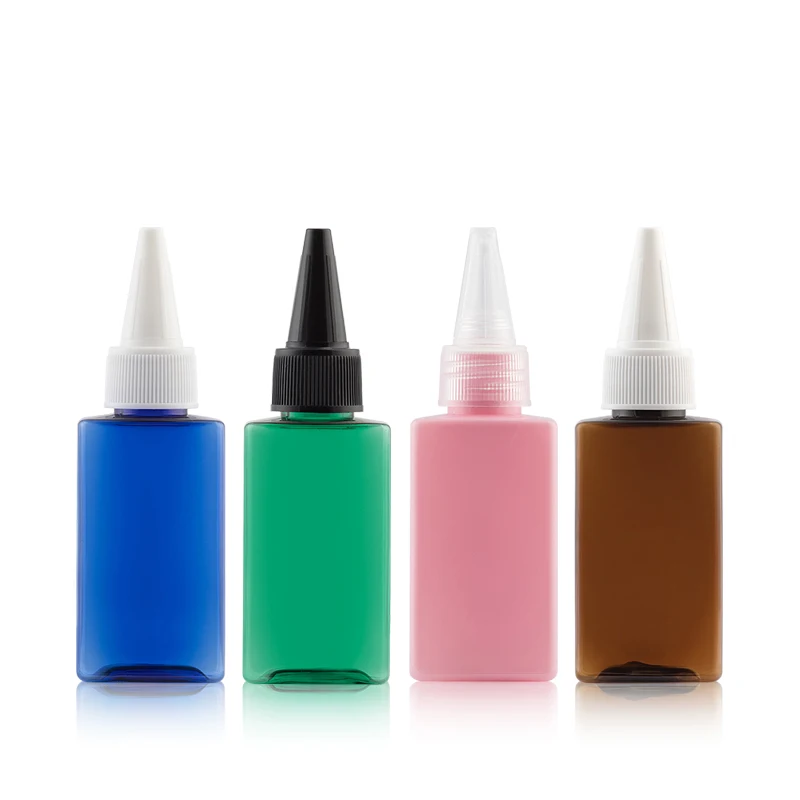 Прозрачныесиниезеленыерозовыекоричневые пустые пластиковые квадратные бутылочки 50 мл х 48, ПЭТ, бутылочки с заостренным горлом 50 куб. См