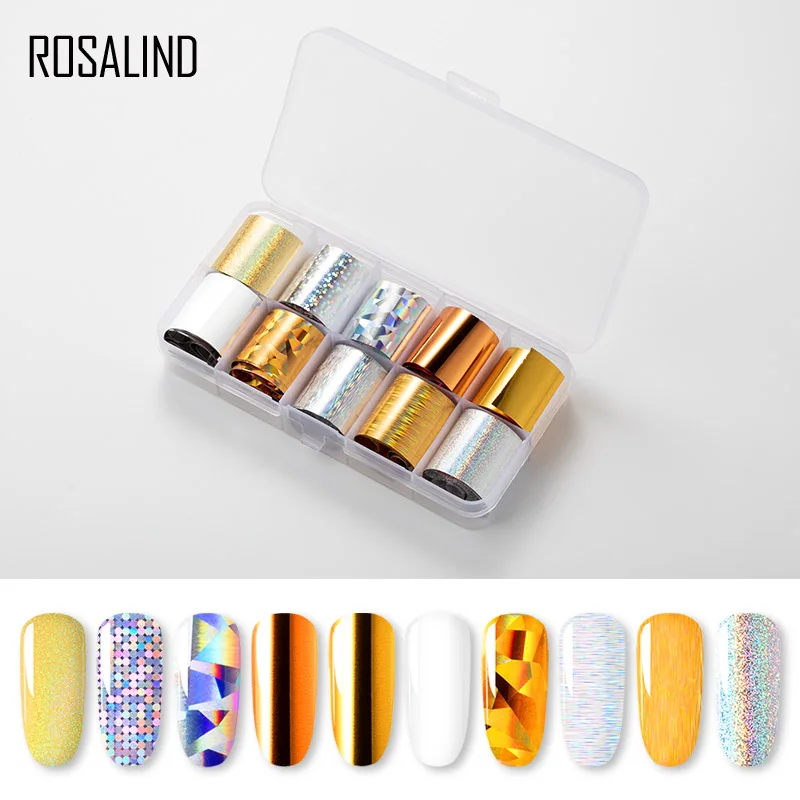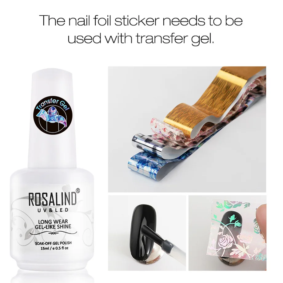 Наклейки ROSALIND Slider из фольги для женского дизайна маникюрного набора, верхние полуперманентные наклейки для ногтей, нужно основа под Гель-лак