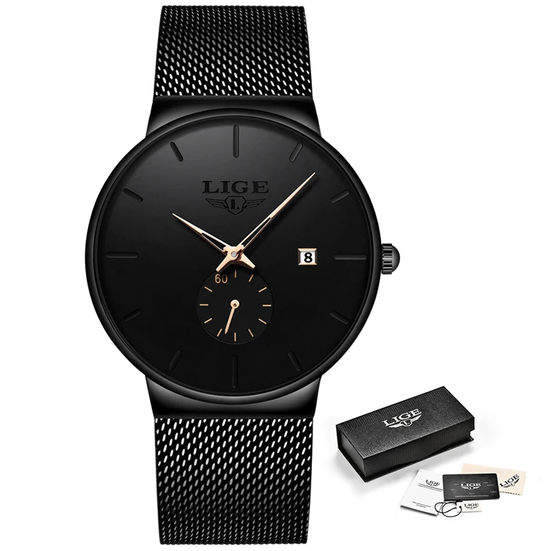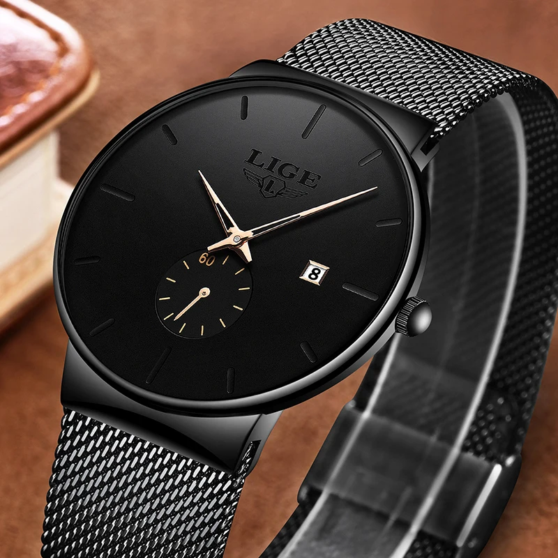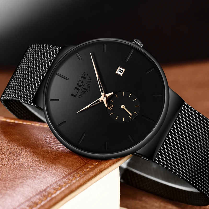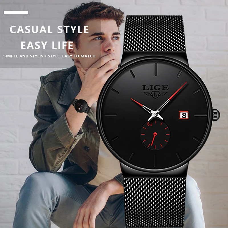 Часы наручные LIGE Мужские кварцевые, роскошные брендовые модные деловые повседневные аналоговые водонепроницаемые