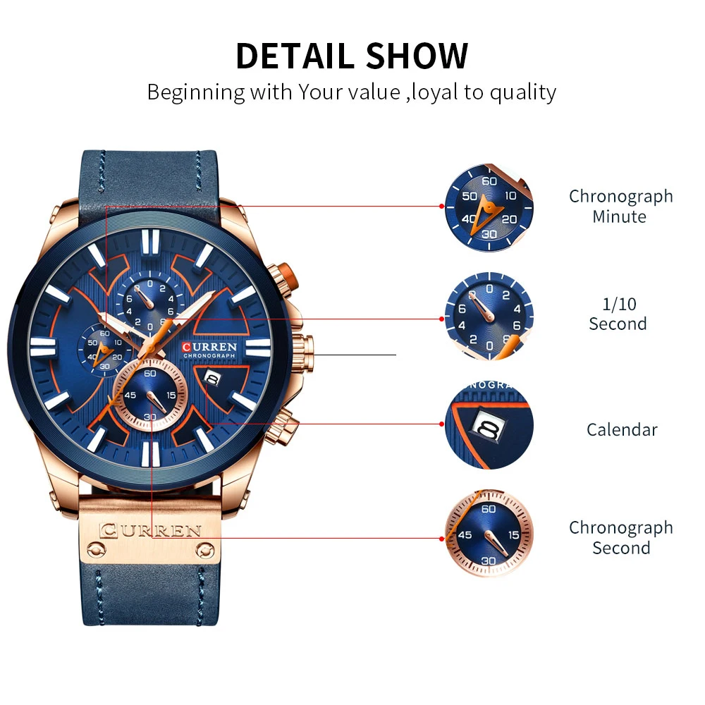 CURREN часы хронограф спортивные мужские часы лучший бренд Роскошные Водонепроницаемые кожаные кварцевые часы мужские наручные часы Relogio Masculino