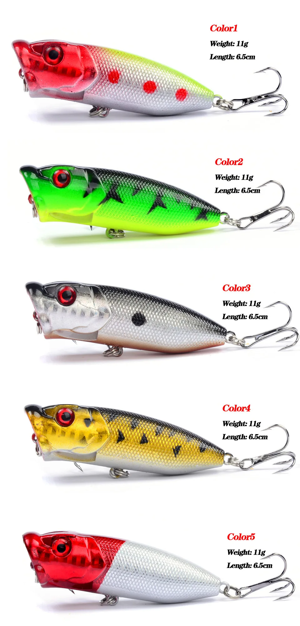 1 шт., Popper Рыбная приманка 6,5 см/12 г Topwater приманки, искусственные 3D глаза жесткая наживка воблер Пластик с двумя 6 #, крючок для рыболовной удочки
