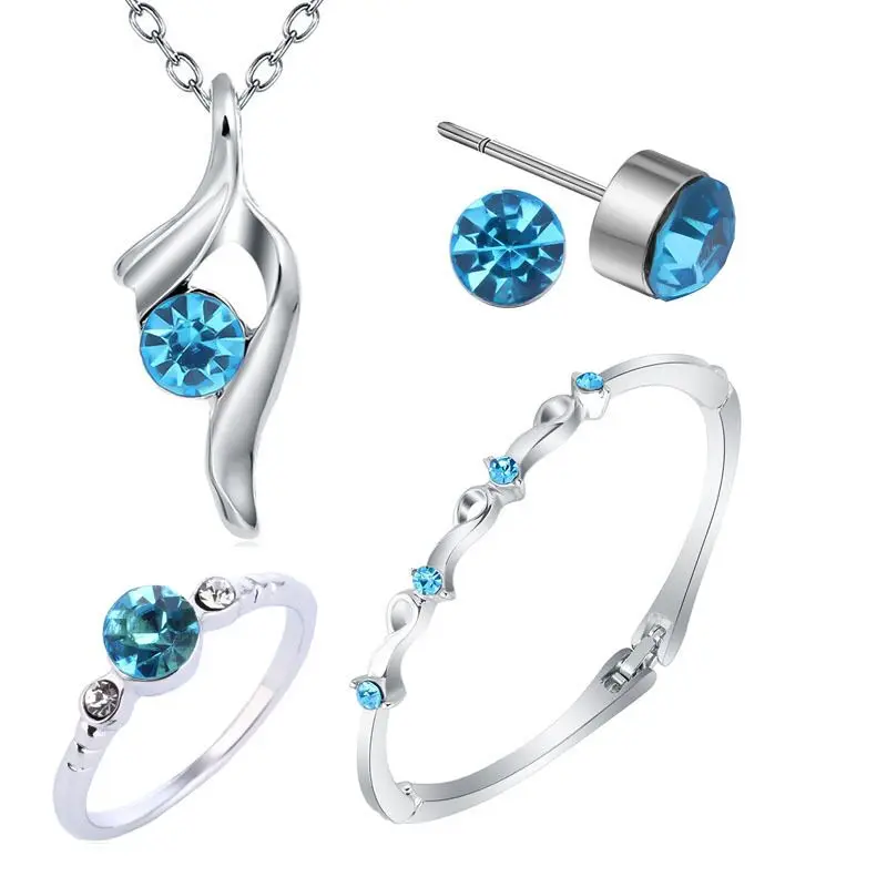 Комплект ювелирных изделий из серебра 925 пробы, с синим кристаллом