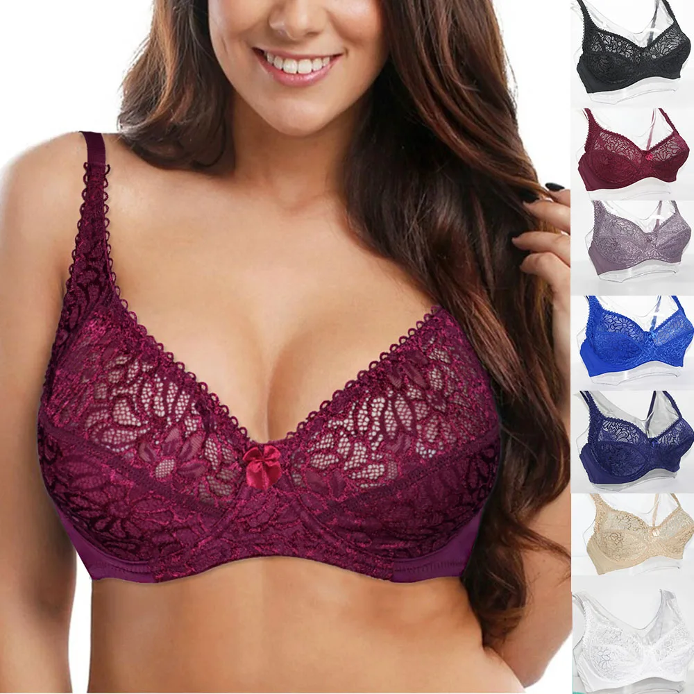 Женский кружевной бюстгальтер с большими чашками, размера плюс, прозрачный бюстгальтер без косточек, сексуальное нижнее белье, бюстгальтер на косточках, B, C, D, DD, E, F
