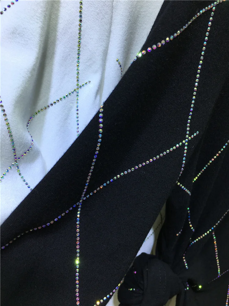 Высококачественный Женский пуловер Стразы с дырками, черно-белый пуловер, нижнее белье, Женская хлопковая футболка с длинным рукавом, мягкие Топы