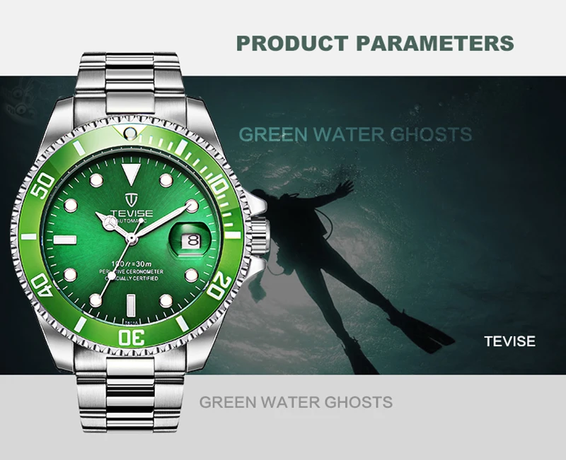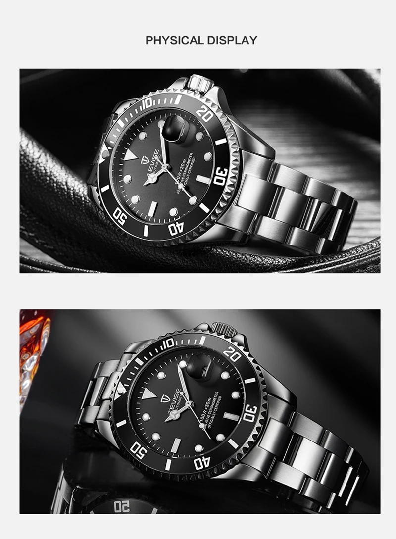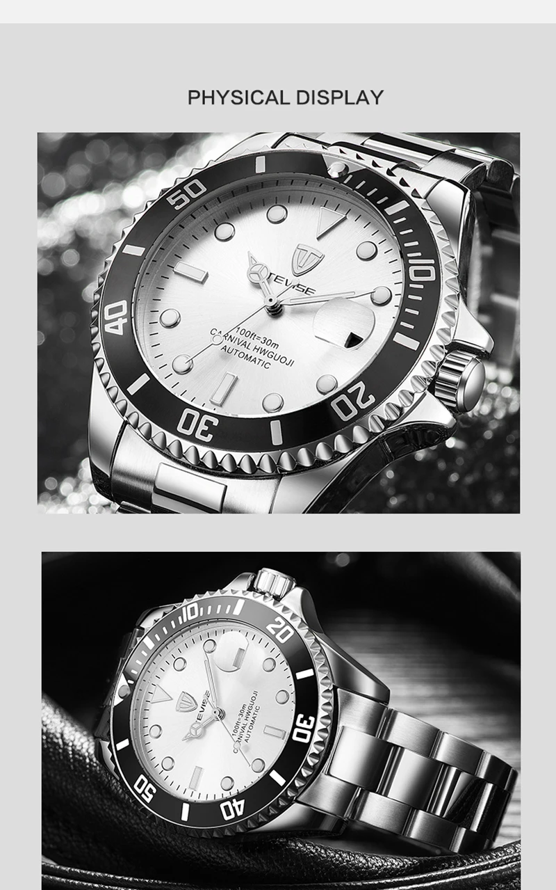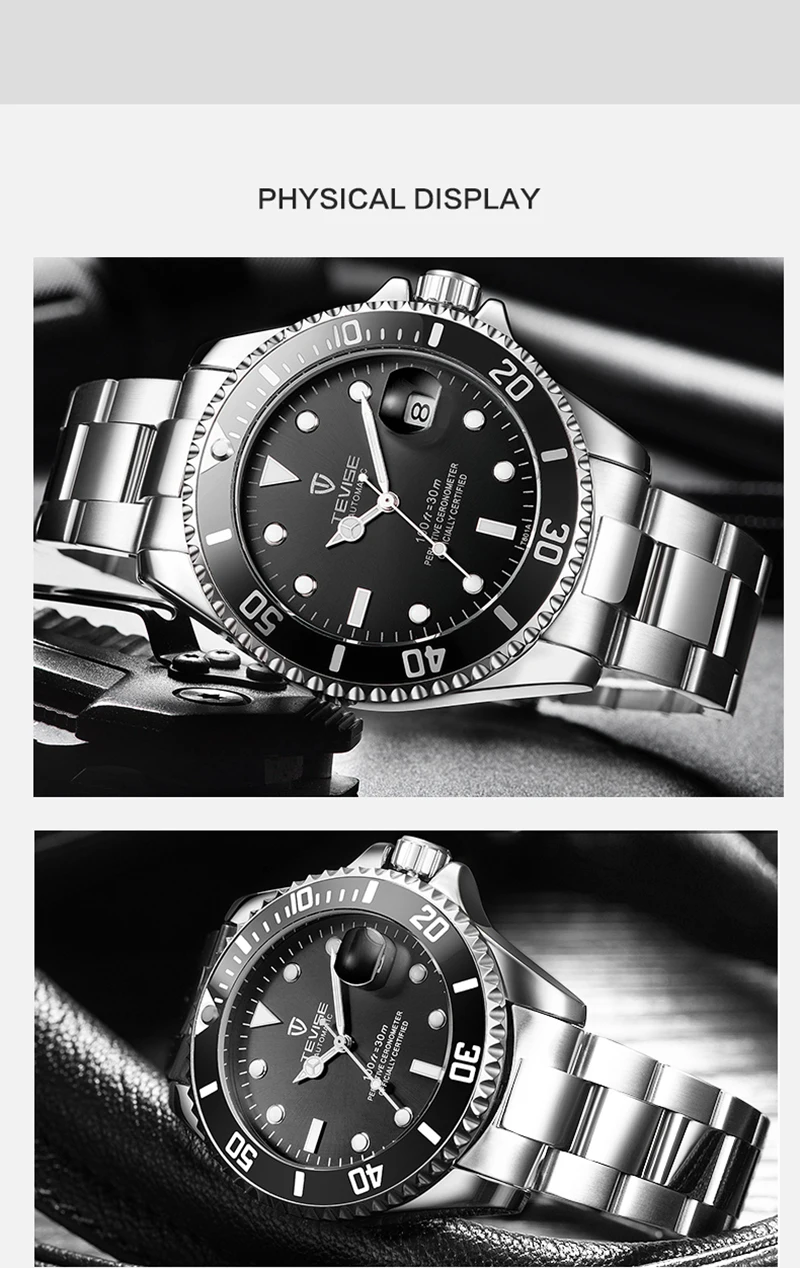 Мужские механические часы Tevise, автоматические водонепроницаемые наручные часы из нержавеющей стали, 2019
