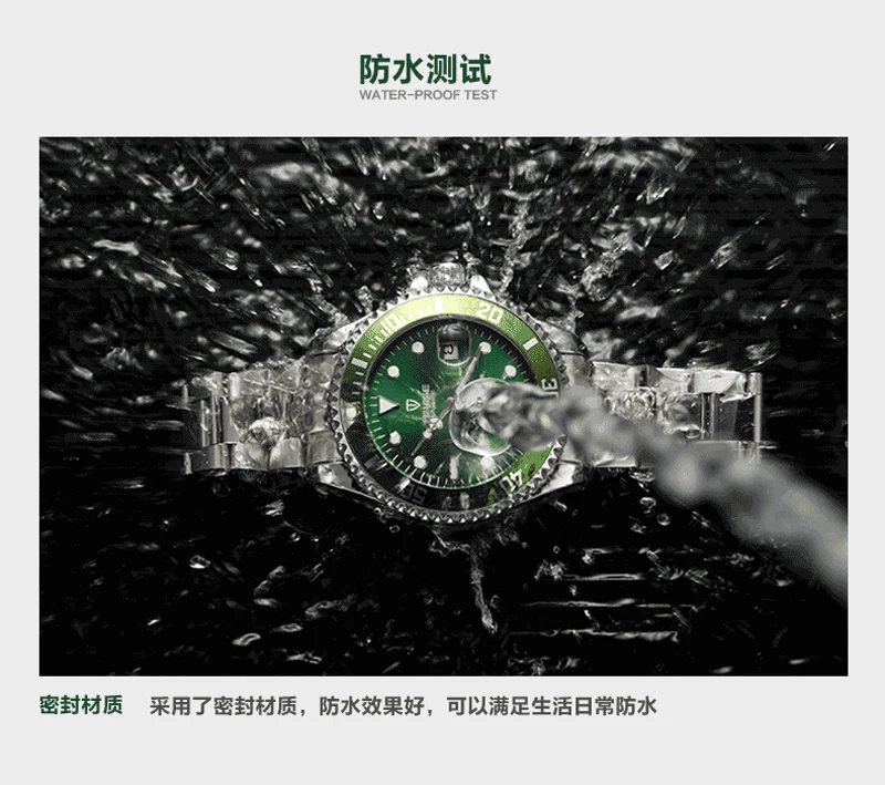 Мужские механические водонепроницаемые часы из нержавеющей стали с автоподзаводом