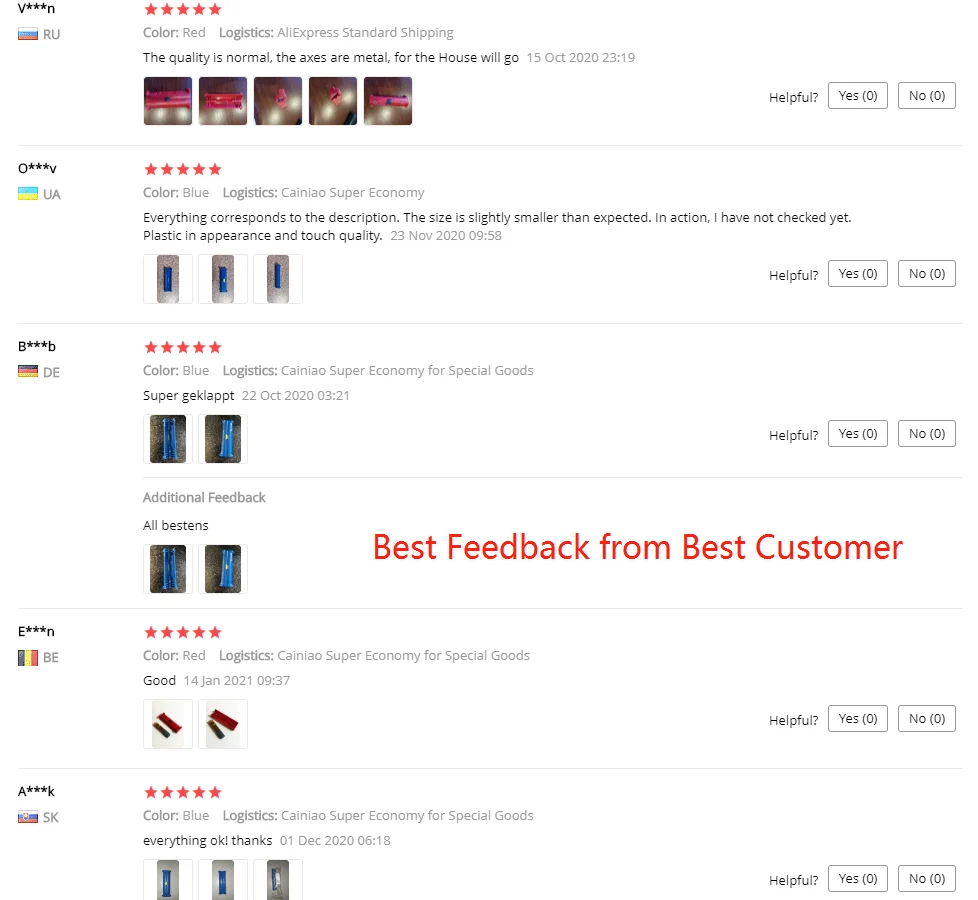 Удовлетворение ваших запросов и положительная обратная связь очень важны для нас.Пожалуйста, оставьте положительные отзывы и 5 звезд, если вы удовлетворены нашими товарами и услугами.Если вы остались недовольны качеством товара и обслуживания, не торопитесь подтверждать получение товара и писать негативный отзыв. Сначала свяжитесь с нами.Мы сделаем все возможное, чтобы решить любые проблемы и предоставить Вам лучшее обслуживание клиентов.
