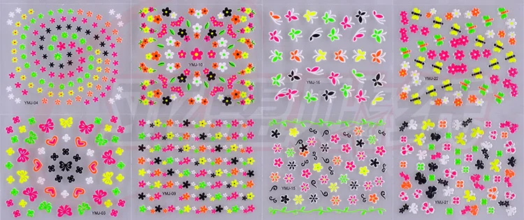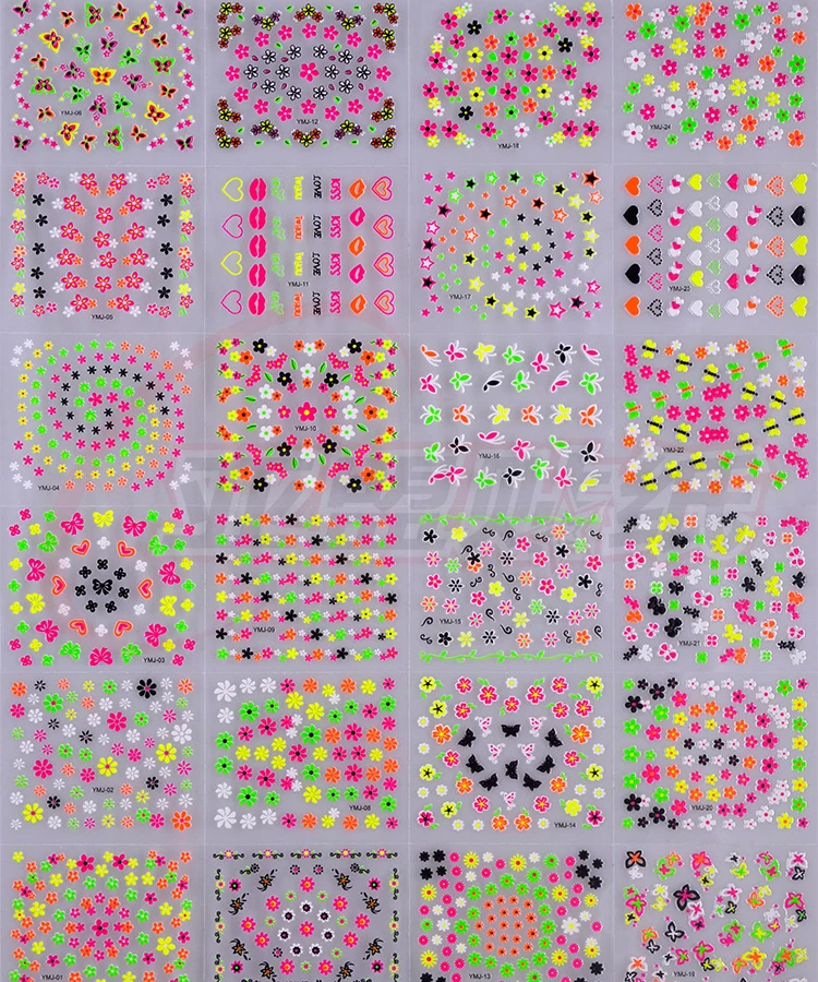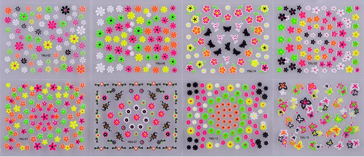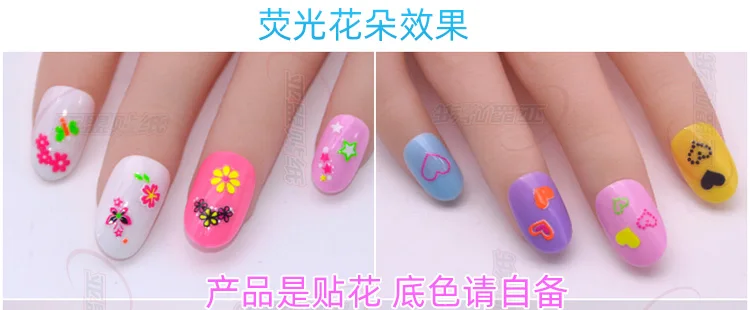 Светящиеся флуоресцентные 3D наклейки для ногтей, цветок, звезда, Мультяшные украшения, наклейки, 3D переводные наклейки, наклейки для ногтей