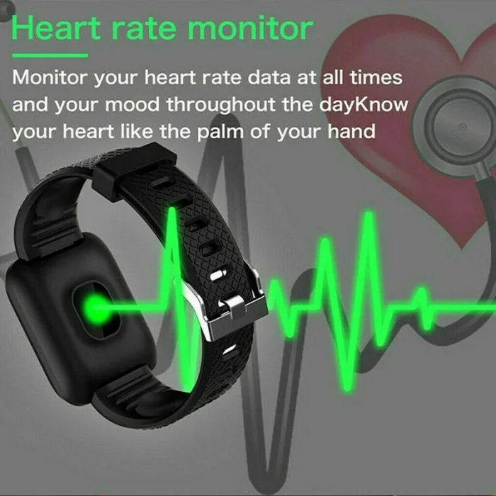 Смарт-часы 116plus, Bluetooth, тонометр, пульсометр, фитнес-трекеры