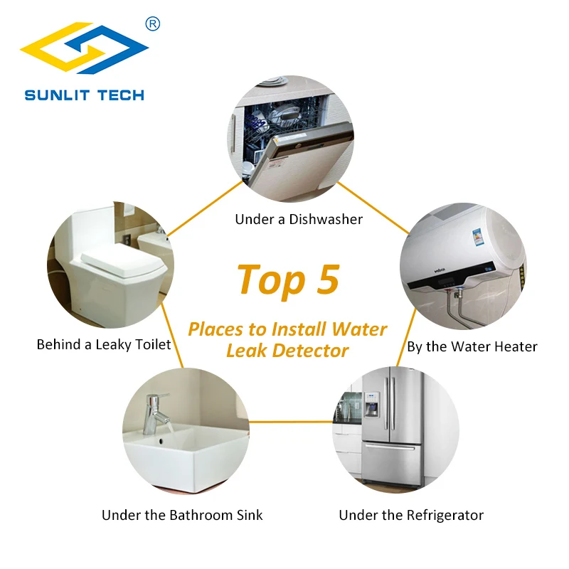 Featurewater leakage sensor water leak detector for Bathroom Laundry
