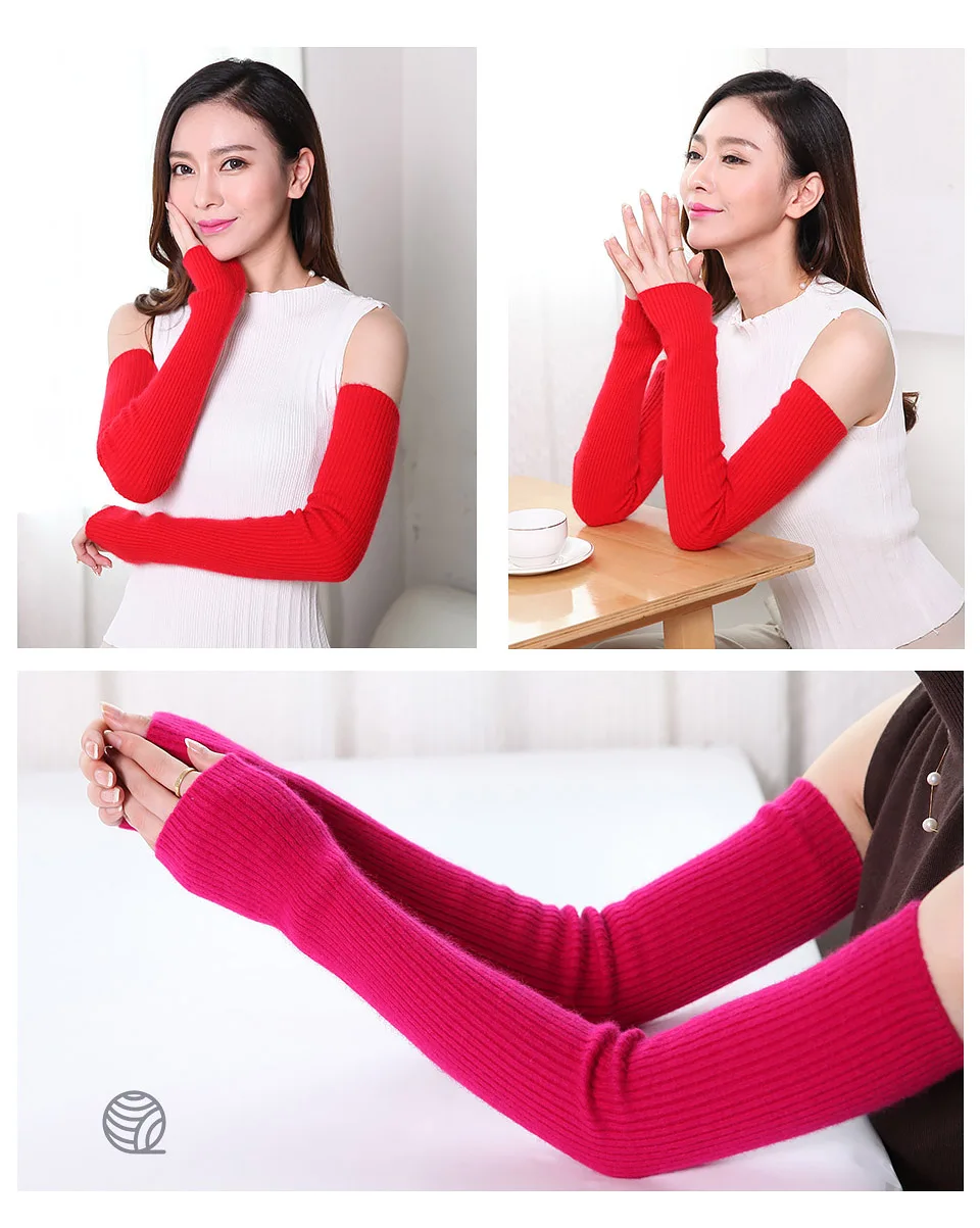 Перчатки женские зимние кашемировые без выреза для большого пальца, 40 см, 50 см, 60 см