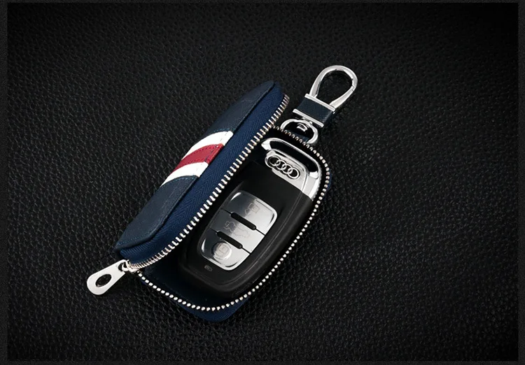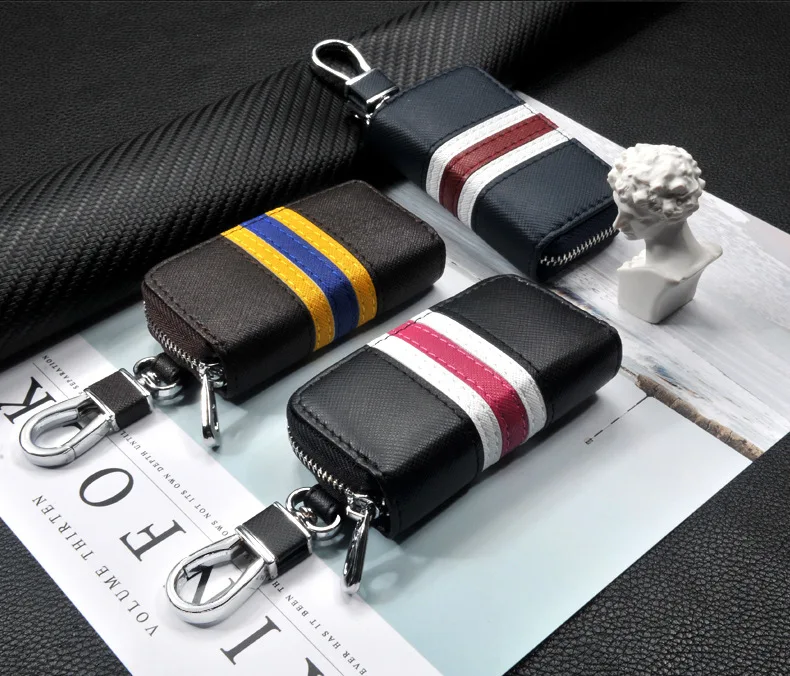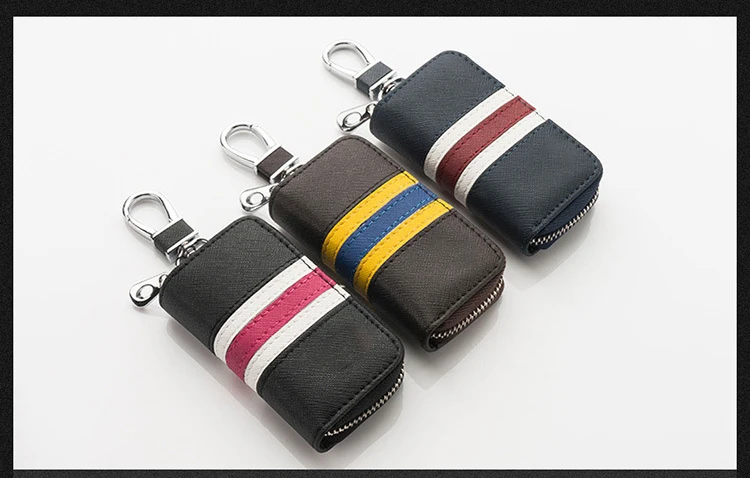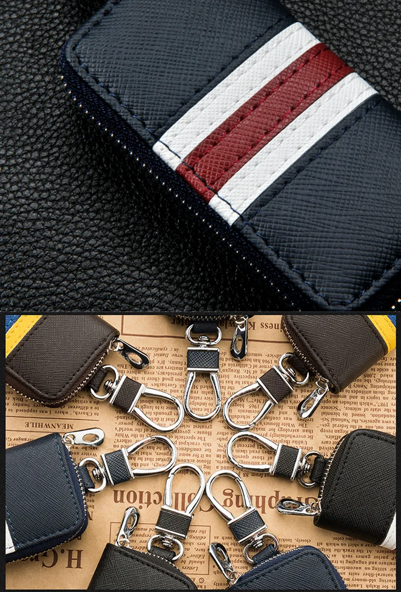 Модная сумка для ключей из кожи в разноцветную полоску, универсальный чехол для ключей для автомобиля, мужской, Женский мини-кошелек на молнии, ключница