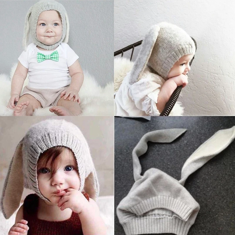 Вязаная Шапка-бини Pudcoco, для мальчиков и девочек, зимняя теплая шапочка с кроличьими ушками