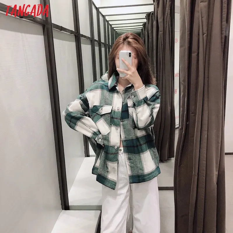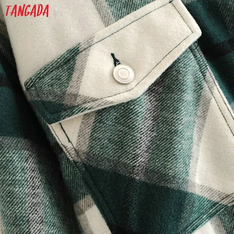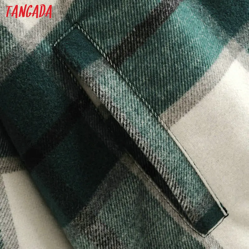 Женское длинное пальто в зеленую клетку Tangada, повседневное теплое пальто, длинное пальто 3H04, зима 2020