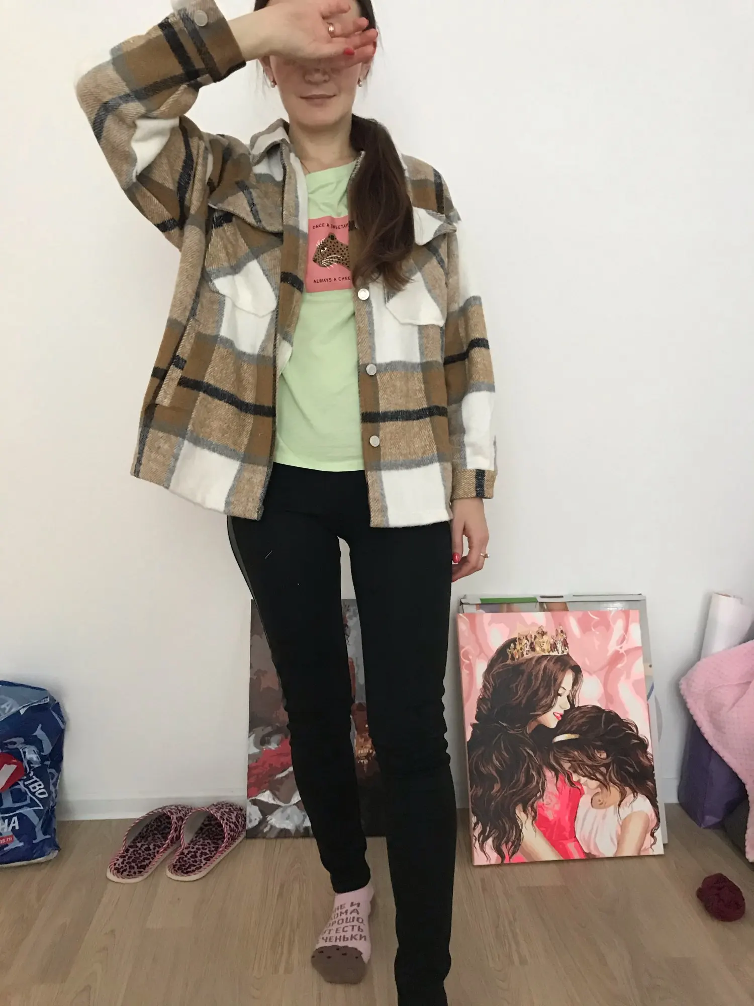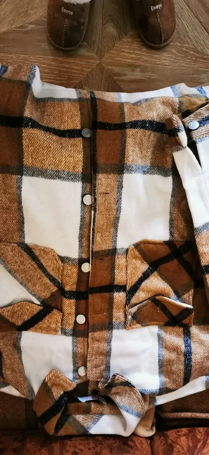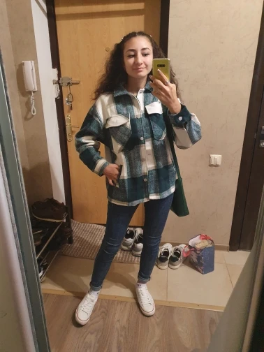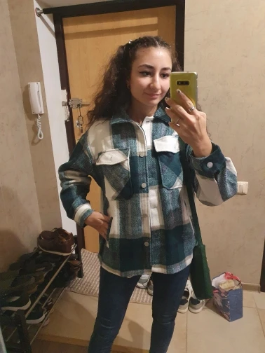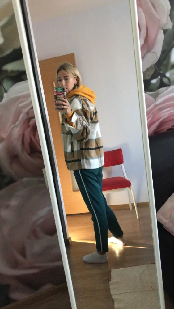 Рубашка тёплая, как фланелевая рубаха, только ещё более плотная (я ношу её, как куртку). По качеству классная, торчало немного ниток, но я их аккуратно убрала и никаких проблем. И ещё неудобно, что карманы изнутри не пришиты к самой рубахе, потому что когда идёшь по улице, ветром раздувает и выглядит как-то не очень, карманы торчат некрасиво и сильно выделяются, но я думаю, что это тоже можно исправить. По размеру я взяла S, мой рост 160 см, сидит оверсайз. Советую, пришла, кстати, тоже очень быстро, где-то за 20 дней))