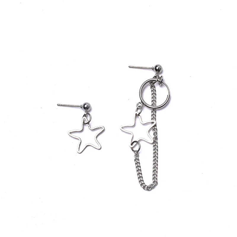 Женские асимметричные серьги-подвески в стиле панк, 1 пара асимметричных сережек с длинными цепочками, в стиле хип-хоп