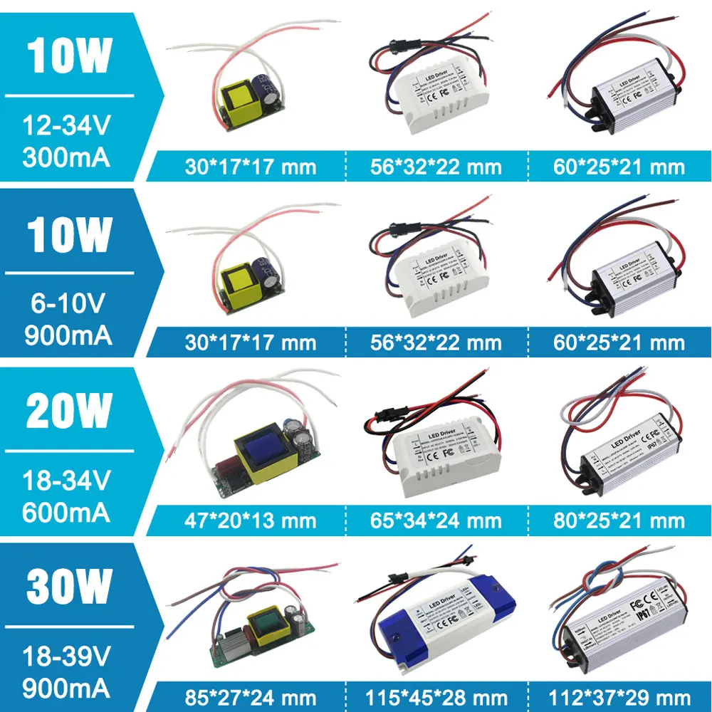 Светодиодный трансформатор 10 Вт, 20 Вт, 30 Вт, 40 Вт, 50 Вт, 80 Вт, 100 Вт, 200 Вт, 300 Вт, блок питания для ламп DIY 10, 20, 30, 50, 100, 200, 300 Вт