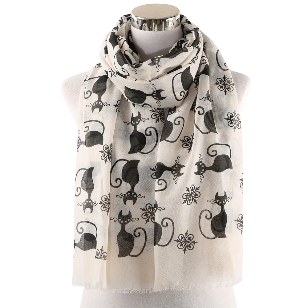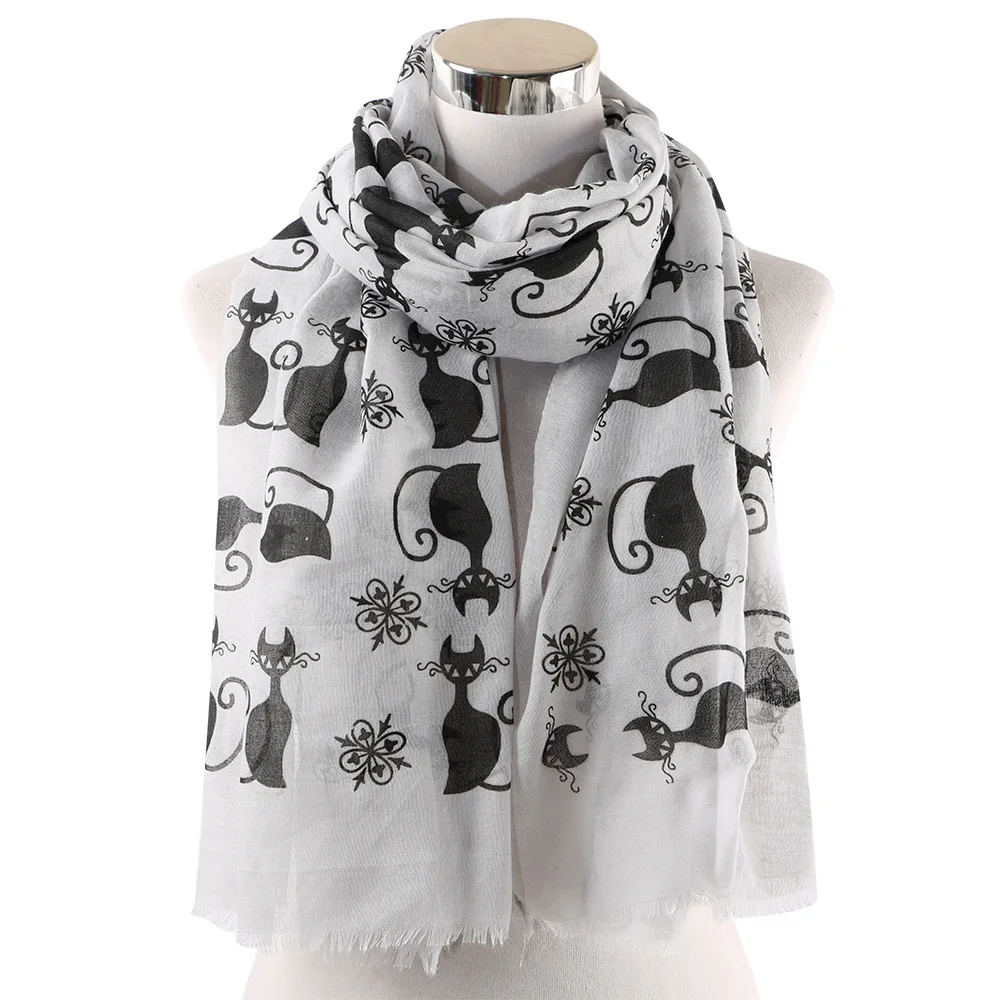 Шарфы женские, с принтом кошек, белые, розовые, хиджаб, шали из вискозы, 2019