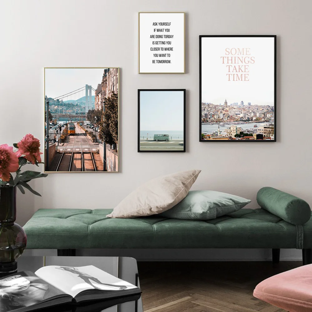 Городской мост, пляж, автомобиль, автобус, язычковый пейзаж, настенная Картина на холсте, скандинавские плакаты и принты, настенные картины для декора гостиной