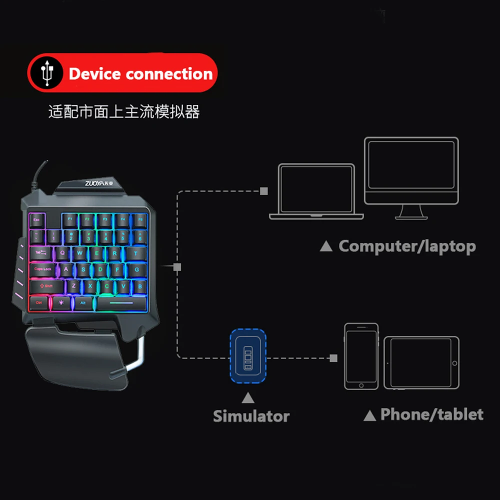 Игровая клавиатура 35 ключей с светодиодный Подсветка клавиатура проводной USB с помощью одной руки мембранная клавиатура для ноутбука компьютерная игра