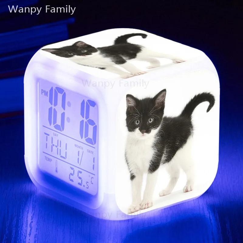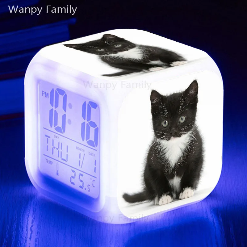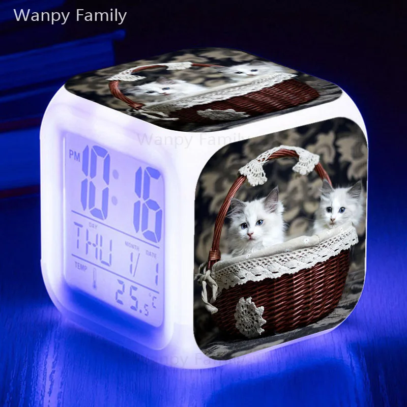 Очень милый маленький будильник с кошкой, 7 цветов, светящийся Многофункциональный светодиодный Будильник, большой экран, сенсорные чувствительные цифровые часы, часы