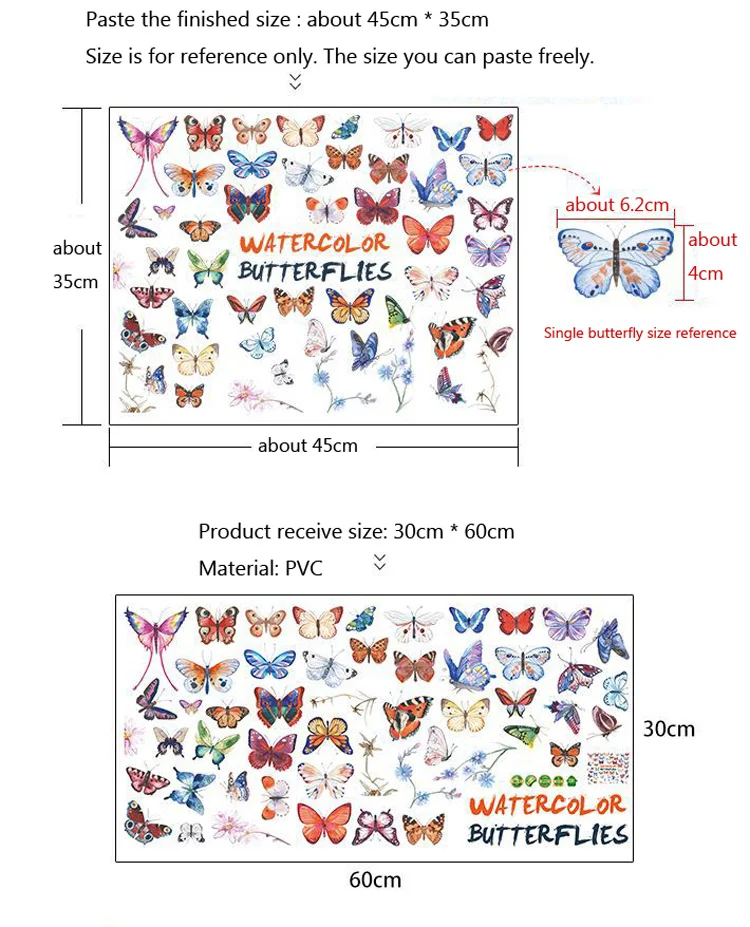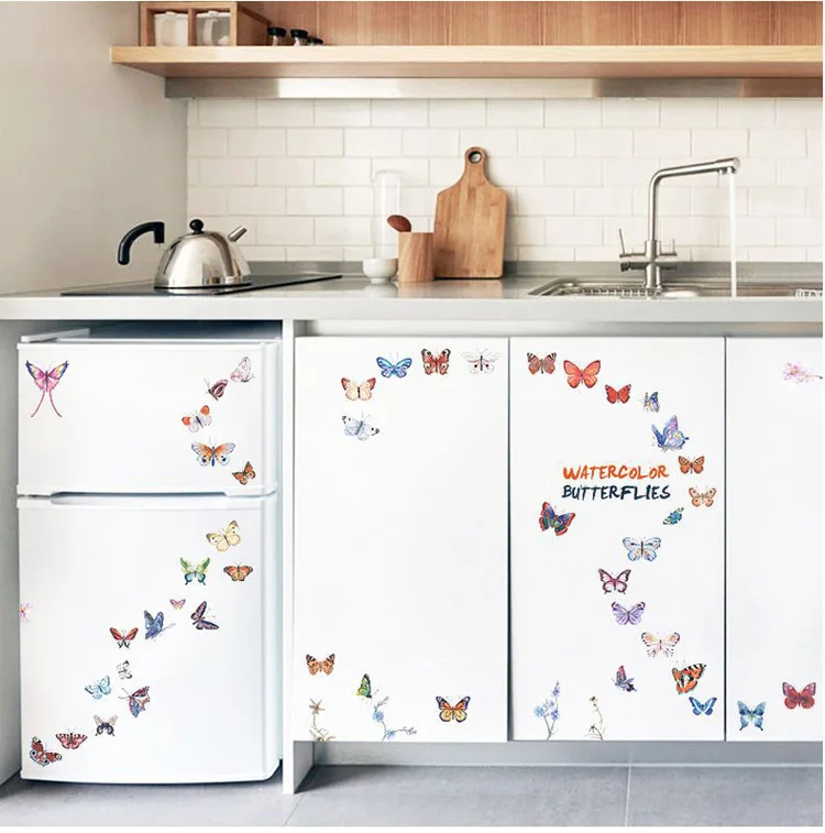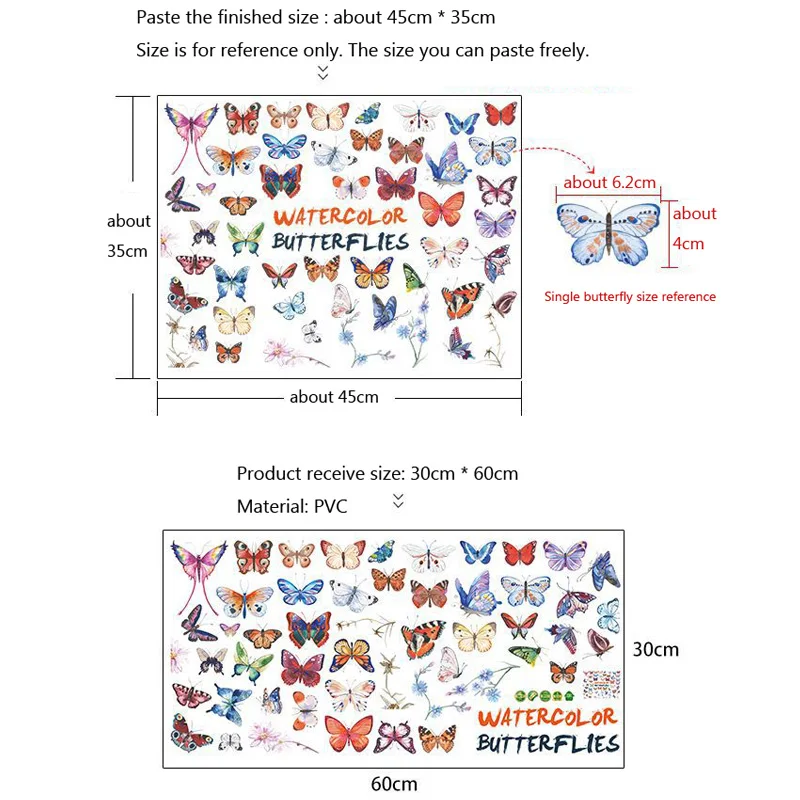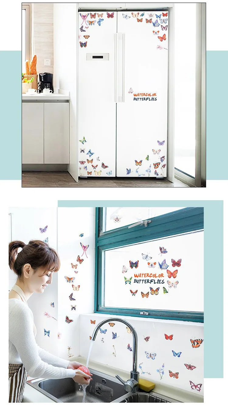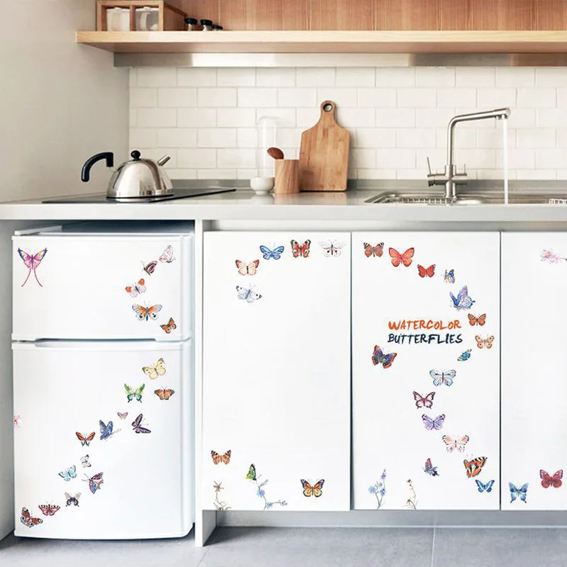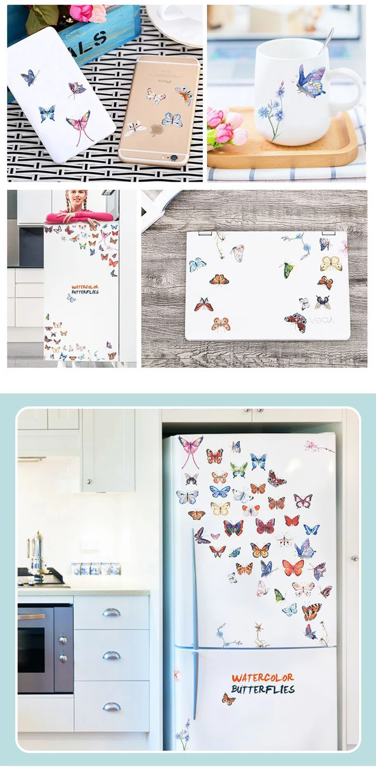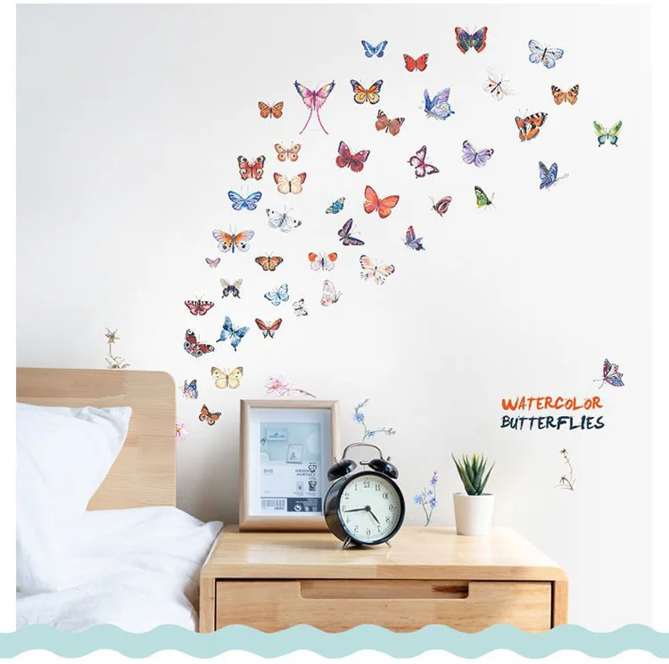 Комбинированная Наклейка на стену с акварелью и бабочкой, для гостиной, спальни, кабинета, свадебное украшение, домашний декор, наклейки с бабочками