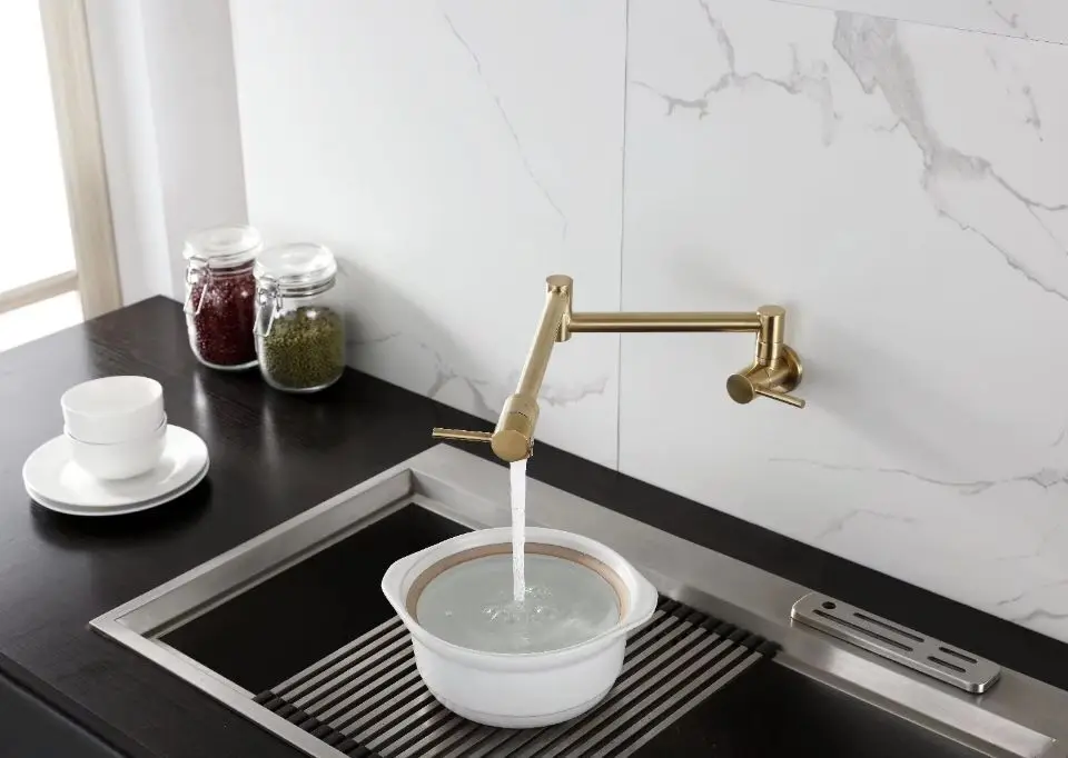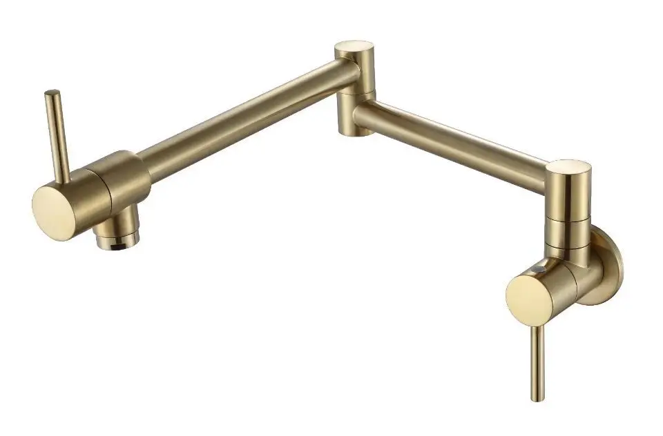 Твердый латунный настенный наполнитель для кастрюли, смеситель для кухни с двумя ручками, смеситель для кухни с двойным Изливом, Новый матовый золотой кран для холодной воды