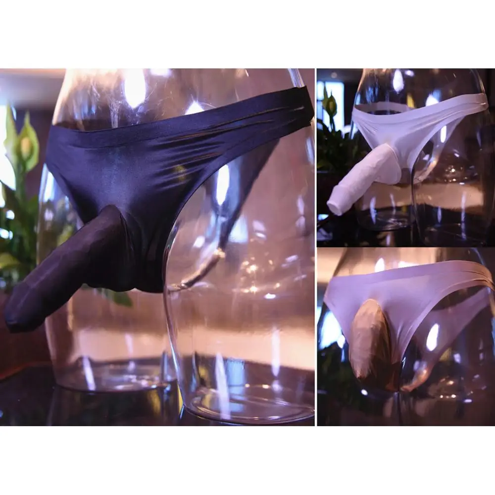 Мужские бесшовные шелковые трусики с низкой талией, стринги, тонкий пенис, облегающие трусы, стринги, эротическое нижнее белье, фетиш одежда
