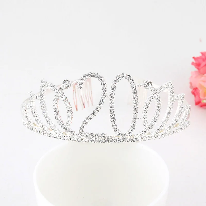 Женская тиара на день рождения, обруч с короной для девушек, украшение для вечеринки в честь Дня рождения 20, 21