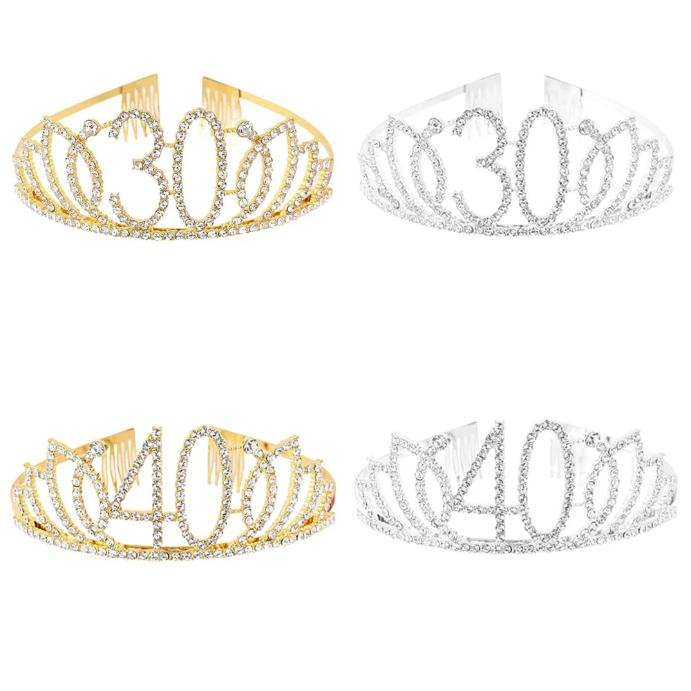 Аксессуары для вечевечерние НКИ в честь Дня Рождения для женщин и девушек 30 40 тиара Корона головная повязка Принцесса Королева дня рождения с кристаллами Стразы