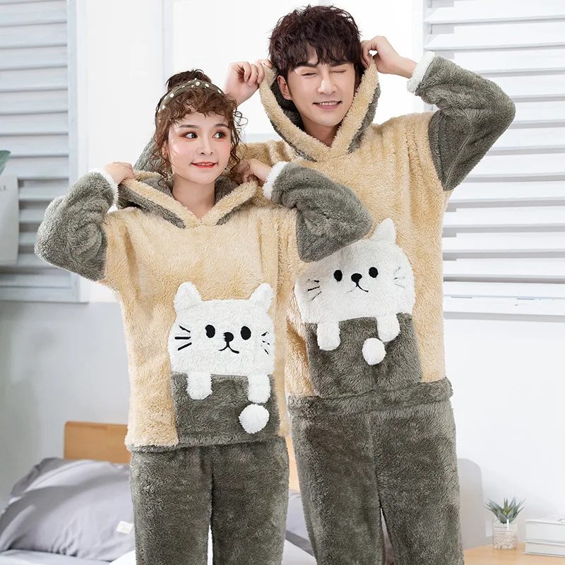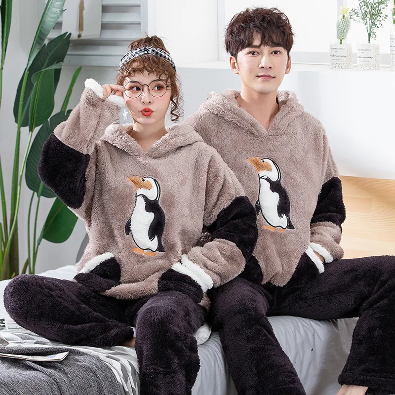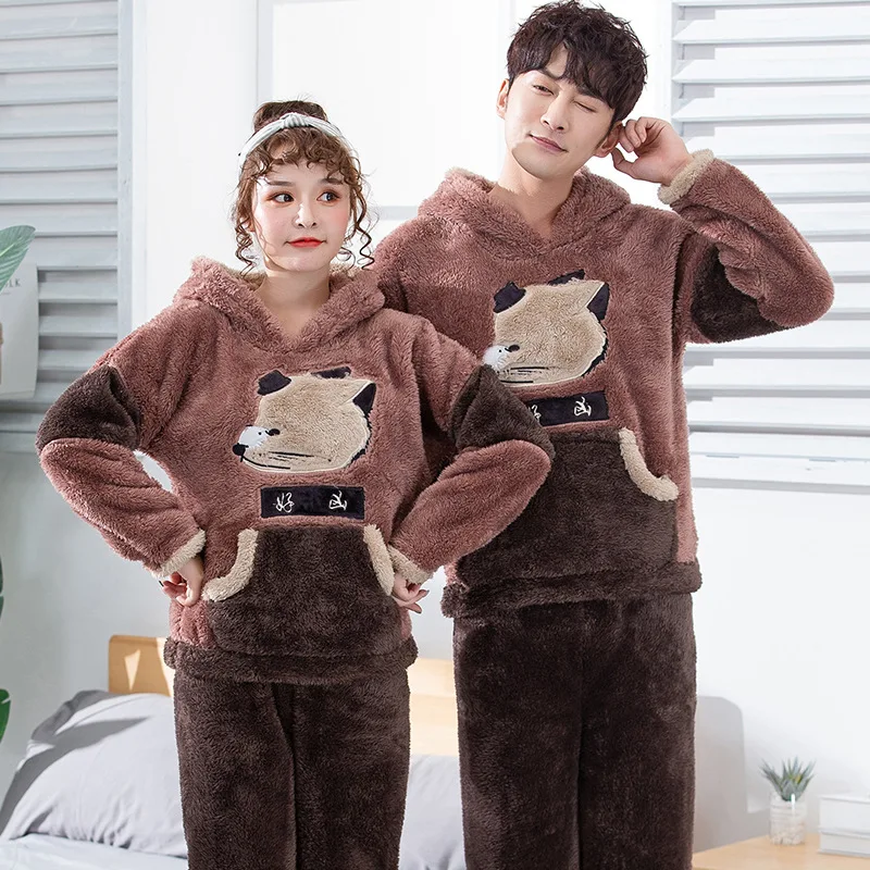 Зимние женские пижамные комплекты, пижамы, толстые теплые фланелевые пижамы с капюшоном, пижамы для пар с мультяшными животными, домашняя одежда