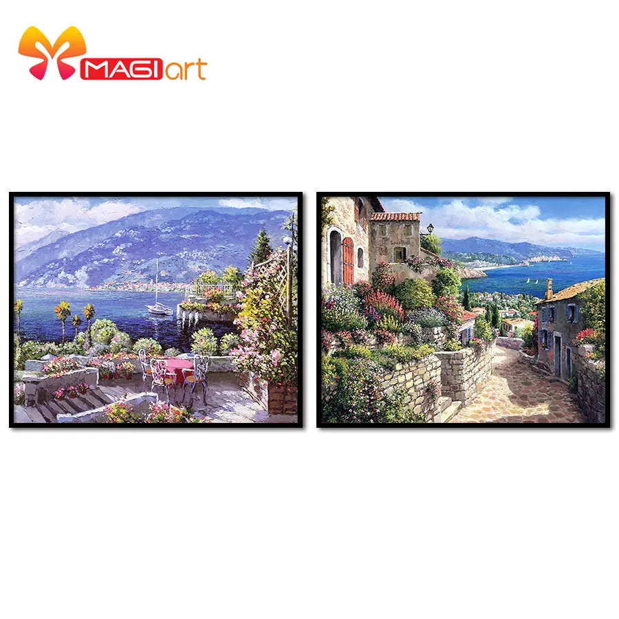 Наборы для вышивки крестом наборы для вышивки 11CT водорастворимые рисунки на холсте 14CT пейзажная живопись цветок Town-NCMS041
