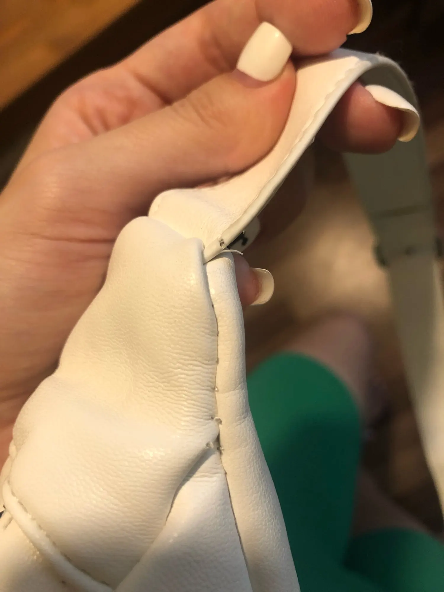 Искала белую поясную сумку именно с серебряной фурнитурной. Данный товар разочаровал к сожалению. Швы во многих местах кривые. В одном месте уже расходятся швы,хоть сумка и не была ещё в использовании. Залом на ручке,который не расправится.