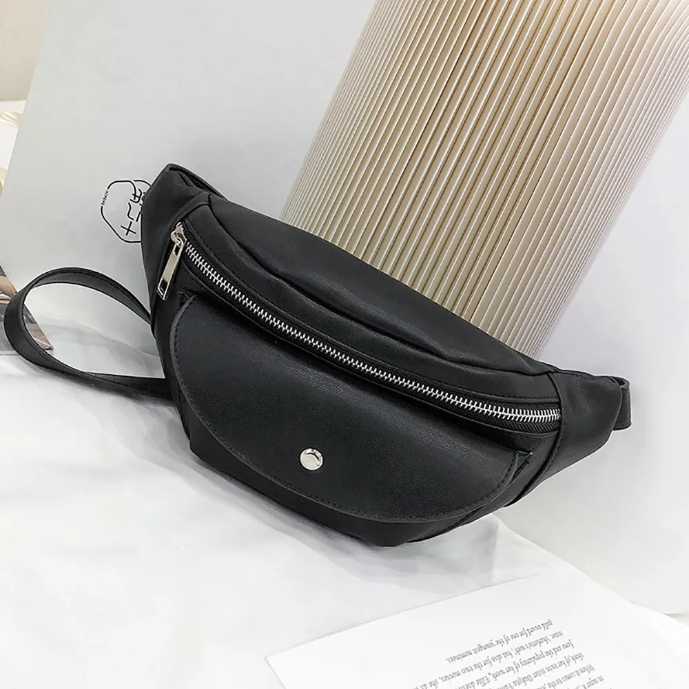 Сумка поясная женская из искусственной кожи, черная, белая, на молнии, # K20